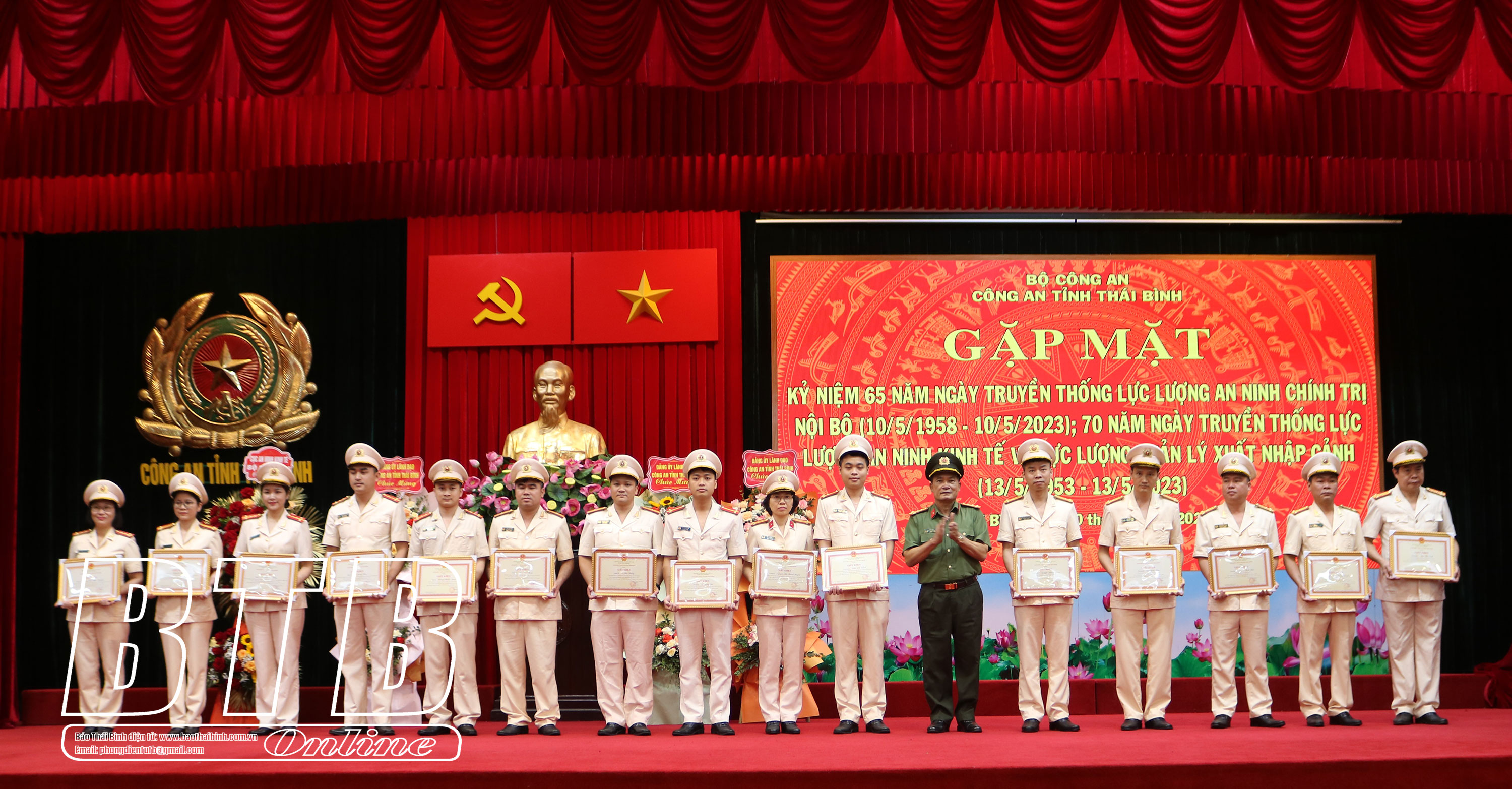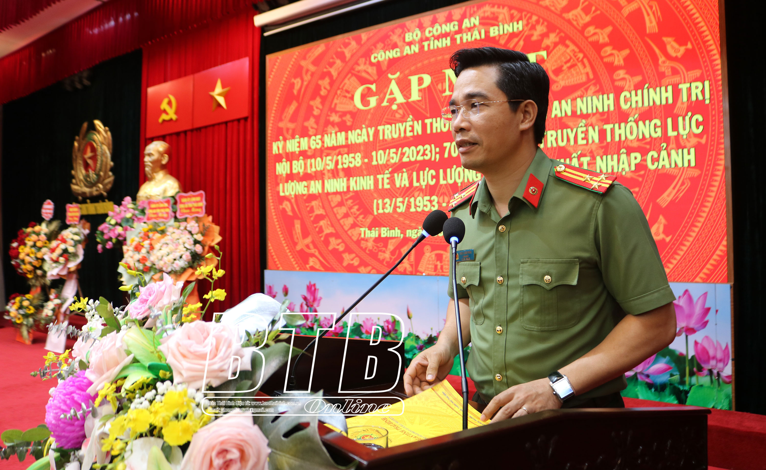 Chiều ngày 10/5, Công an tỉnh tổ chức lễ kỷ niệm 70 năm ngày truyền thống lực lượng an ninh kinh tế (13/5/1953 - 13/5/2023), 70 năm ngày truyền thống lực lượng quản lý xuất nhập cảnh (13/5/1953 – 13/5/2023), 65 năm ngày truyền thống lực lượng an ninh chính trị nội bộ (10/5/1958 – 10/5/2023). Thượng tá Trần Văn Phúc, Ủy viên Ban Thường vụ Tỉnh ủy, Giám đốc Công an tỉnh; các đồng chí lãnh đạo, nguyên lãnh đạo đơn vị qua các thời kỳ dự lễ kỷ niệm.