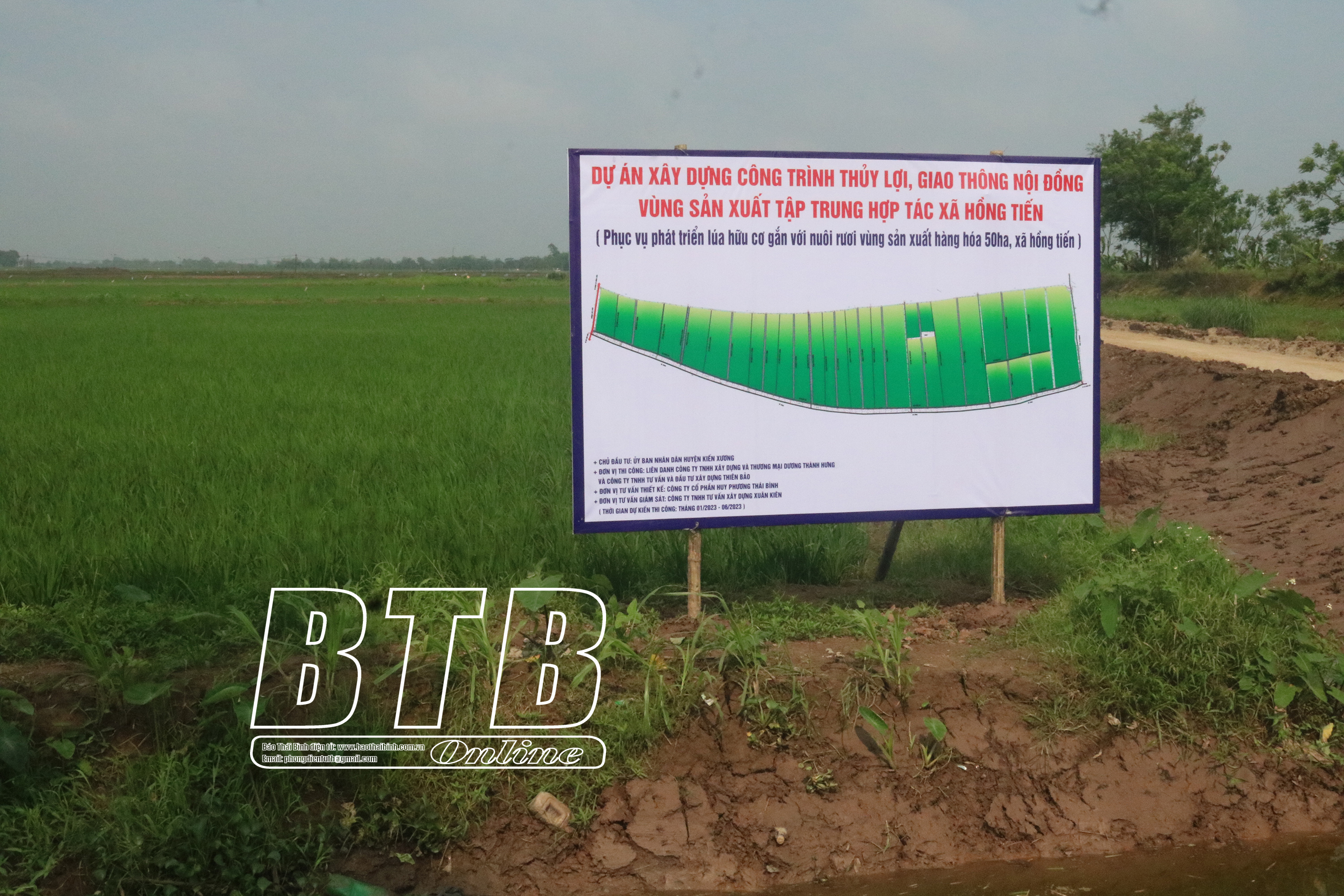 Cải tạo nâng cấp hạ tầng thủy lợi, giao thông nội đồng vùng cấy lúa hữu cơ kết hợp nuôi rươi ở Hồng Tiến. Vùng sản xuất lúa hữu cơ kết hợp nuôi rươi ở xã Hồng Tiến.