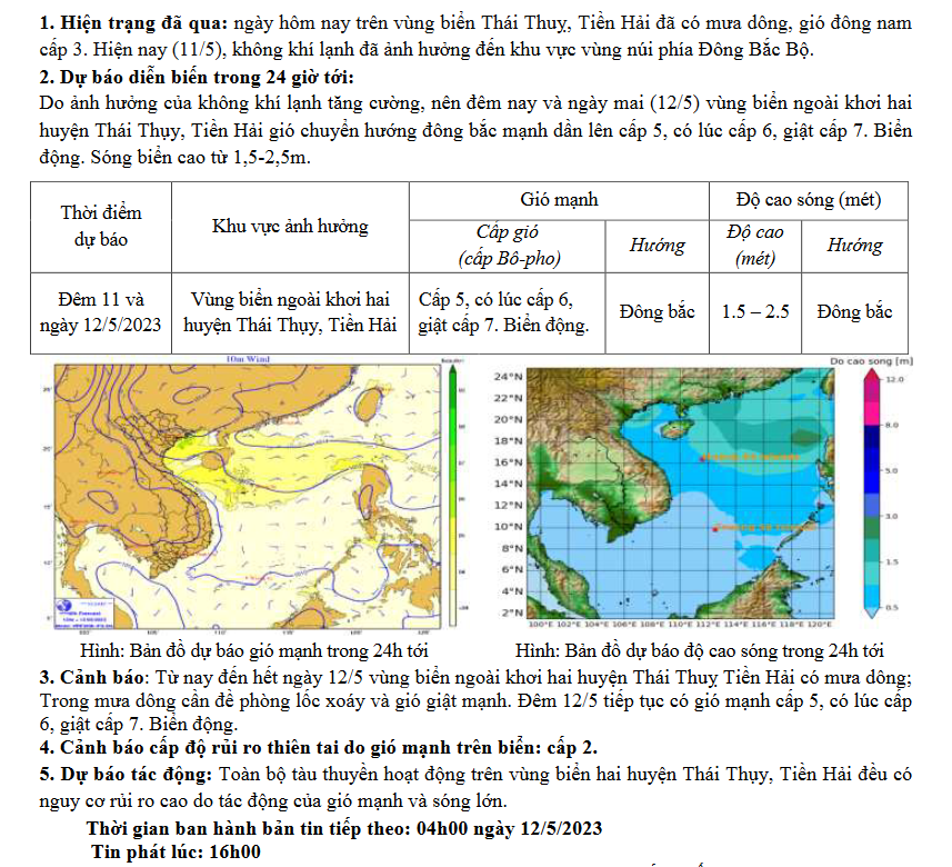 Tin cảnh báo gió mạnh, sóng lớn trên biển (Chiều ngày 11/5/2023)