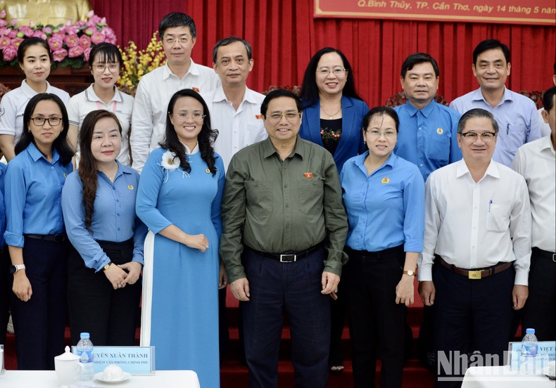 Thủ tướng Phạm Minh Chính chụp ảnh lưu niệm với bà con cử tri, đoàn viên công đoàn, công nhân, người lao động thành phố Cần Thơ.