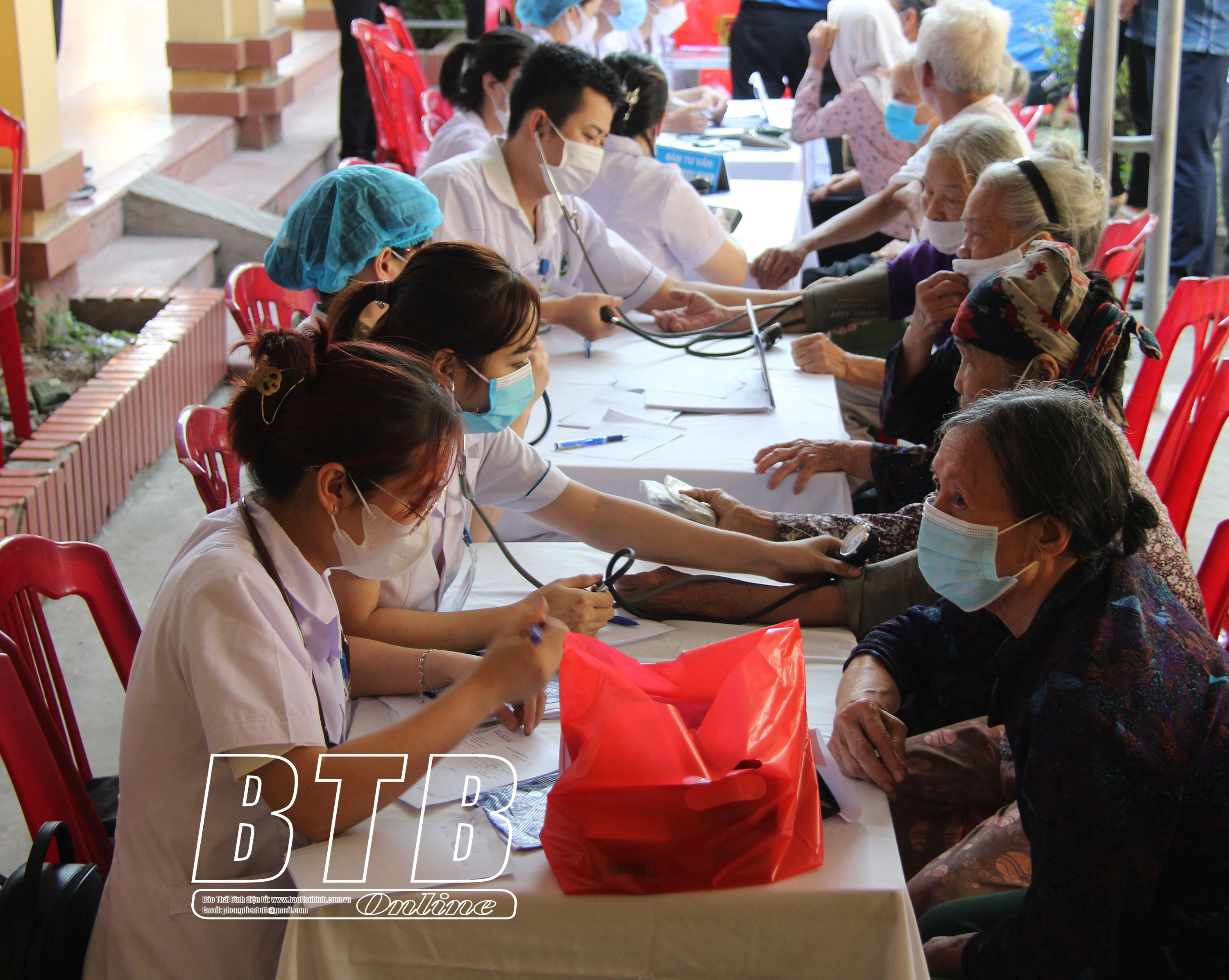 Hội Chữ thập đỏ huyện Đông Hưng khám bệnh cho người cao tuổi xã Đông Á.