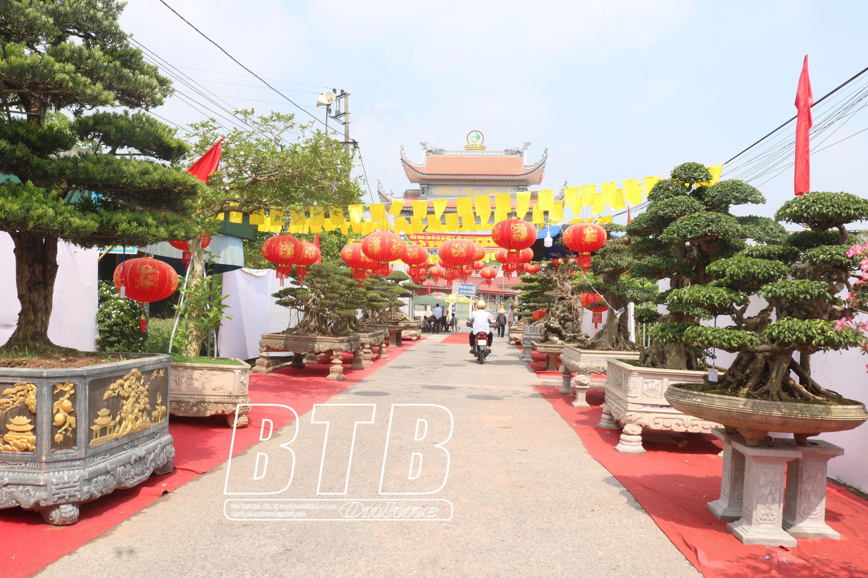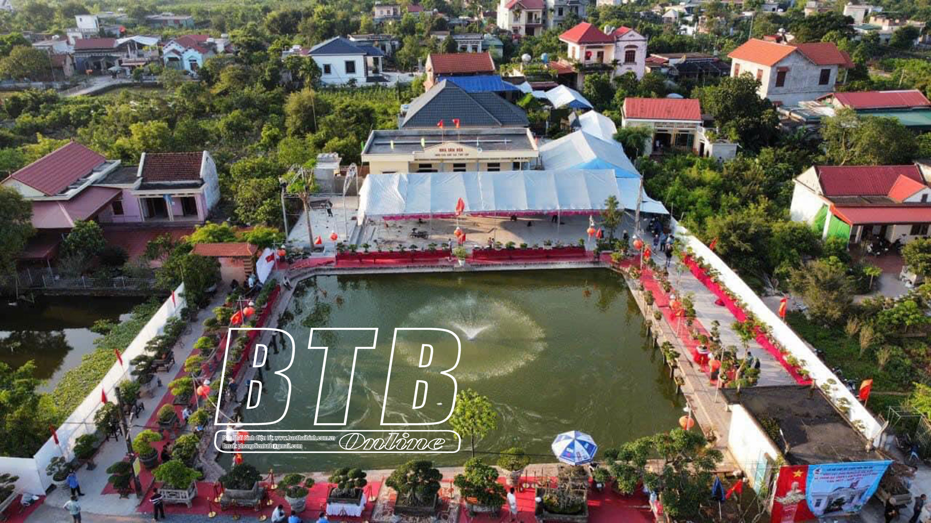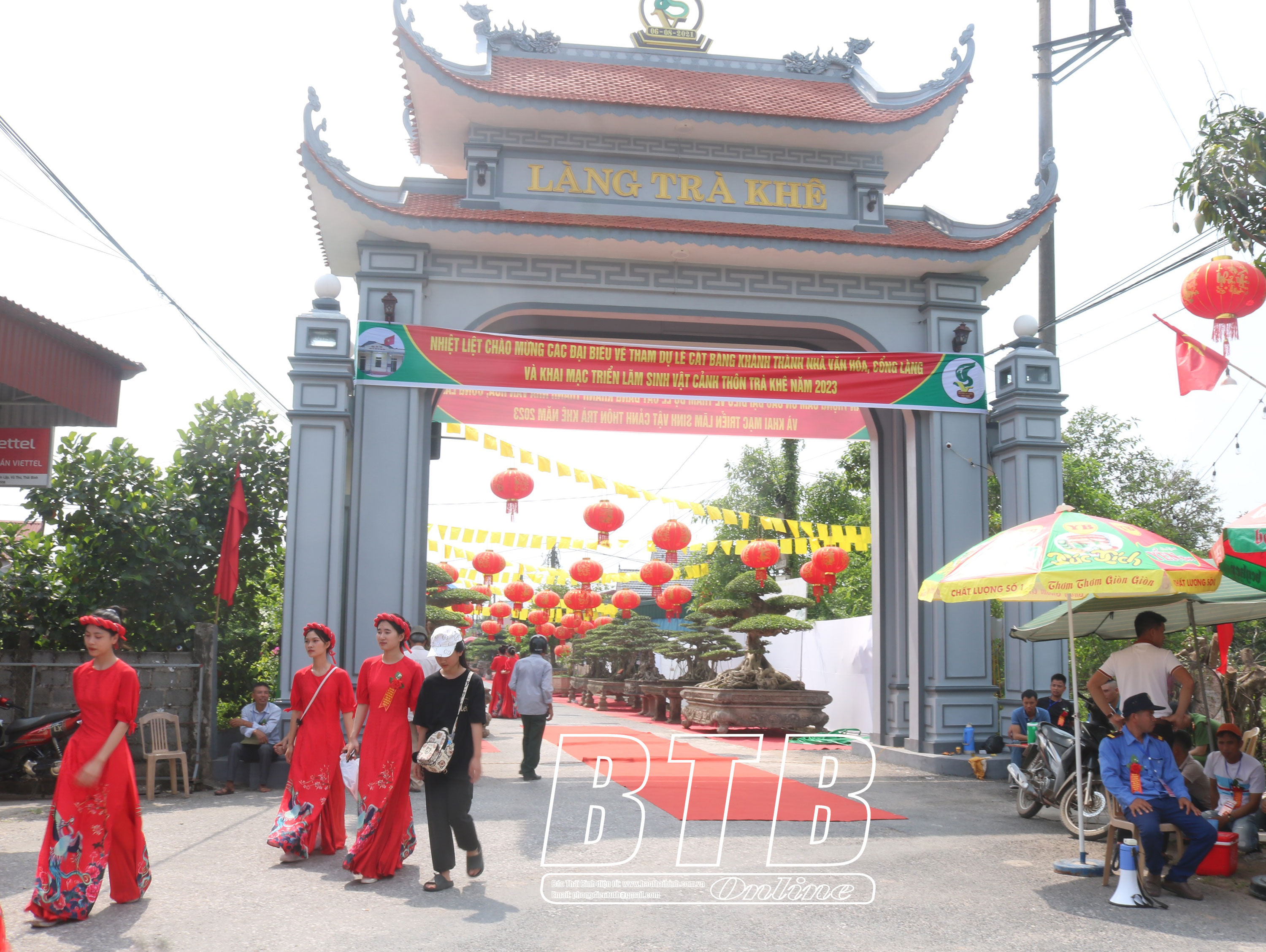 Nhà văn hóa thôn Trà Khê và khu vực triển lãm cây cảnh.