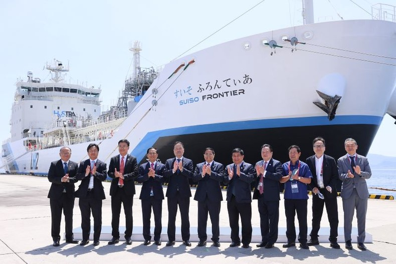 Thủ tướng Phạm Minh Chính và các nhà lãnh đạo đã đi tham quan con tàu vận chuyển hydro lỏng đầu tiên trên thế giới mang tên “Suiso Frontier”.