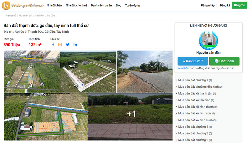 - Mỗi tin tức bất động sản đều được cung cấp đầy đủ các thông tin, hình ảnh và cách thức liên hệ cho người dùng.
