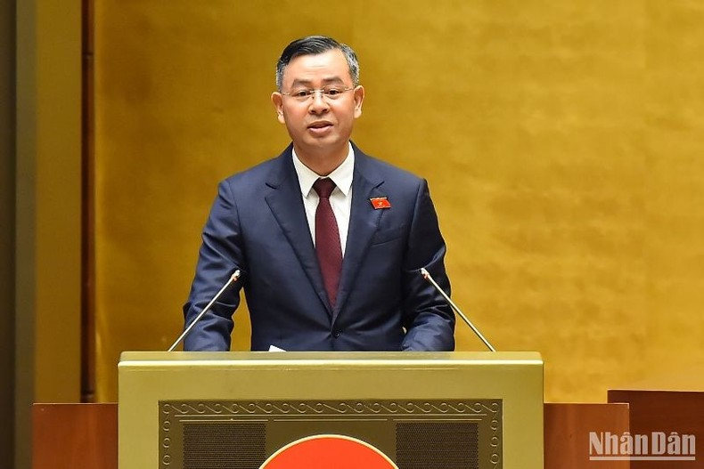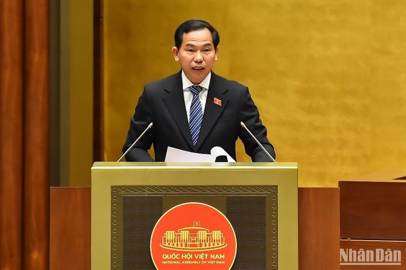 Chủ nhiệm Ủy ban Tài chính, Ngân sách của Quốc hội Lê Quang Mạnh trình bày Báo cáo thẩm tra quyết toán ngân sách nhà nước năm 2021. (Ảnh: THỦY NGUYÊN).