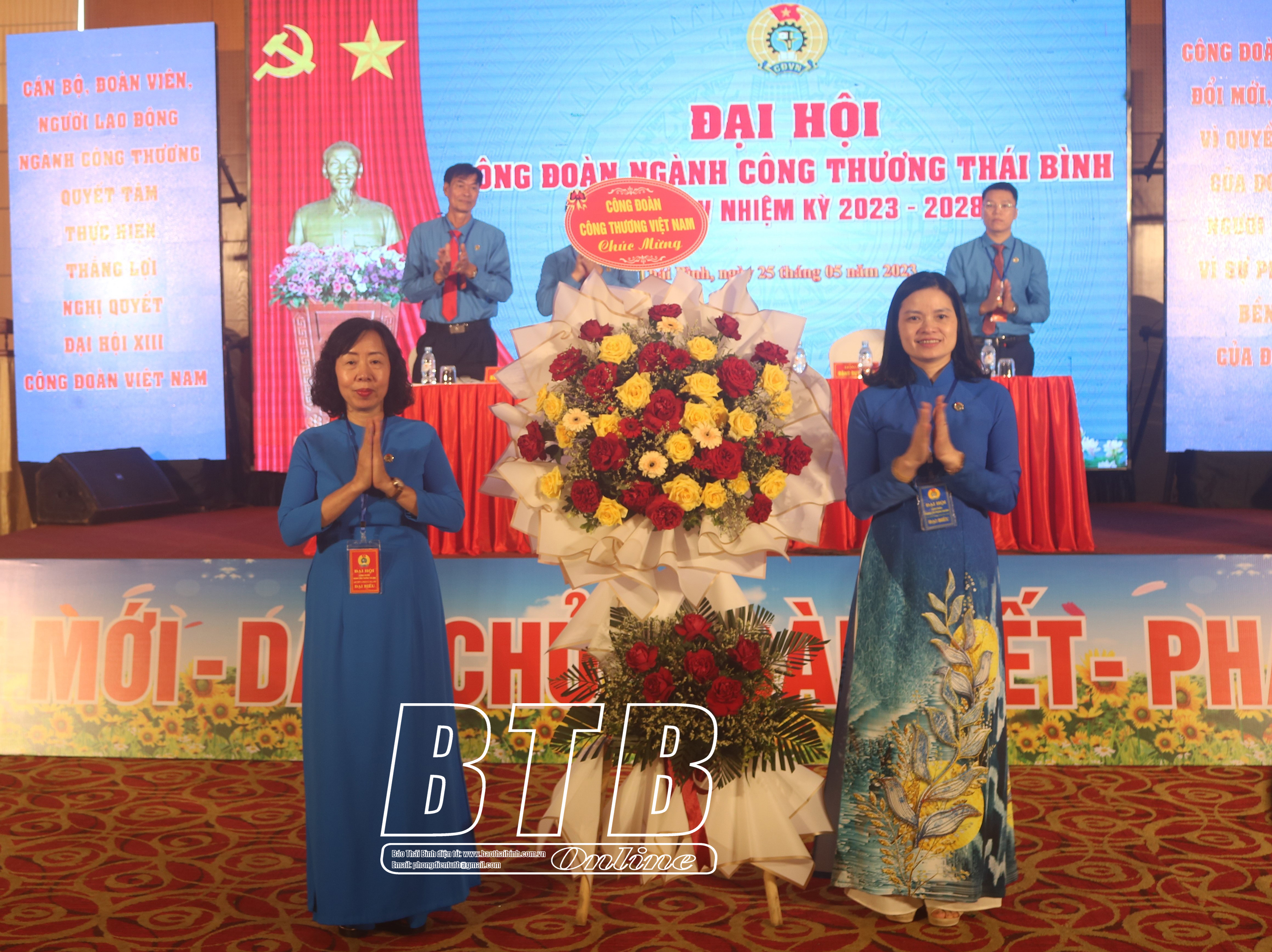 Đại diện Công đoàn Công Thương Việt Nam tặng hoa chúc mừng.