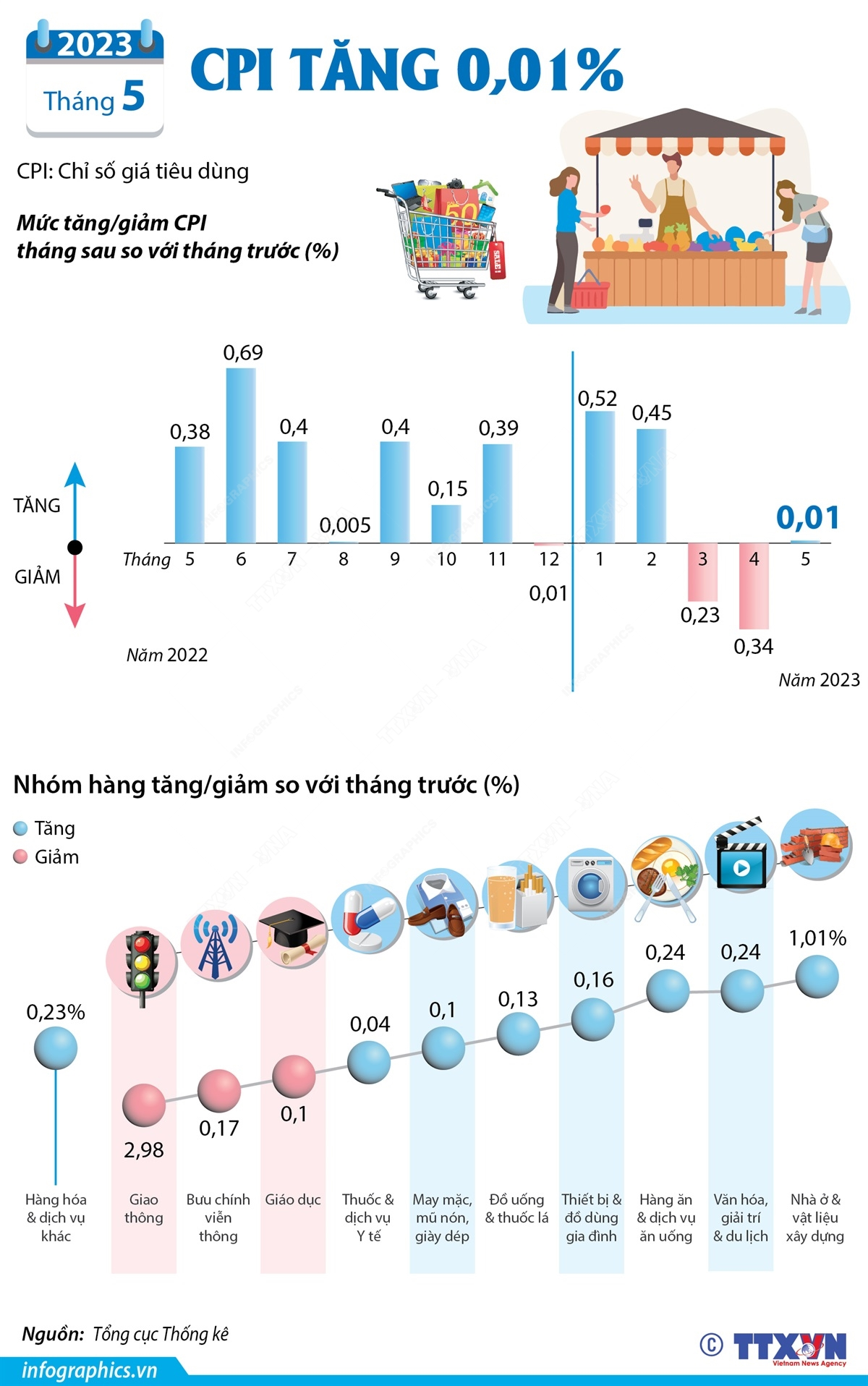 CPI tháng 5/2023 tăng 0,01%