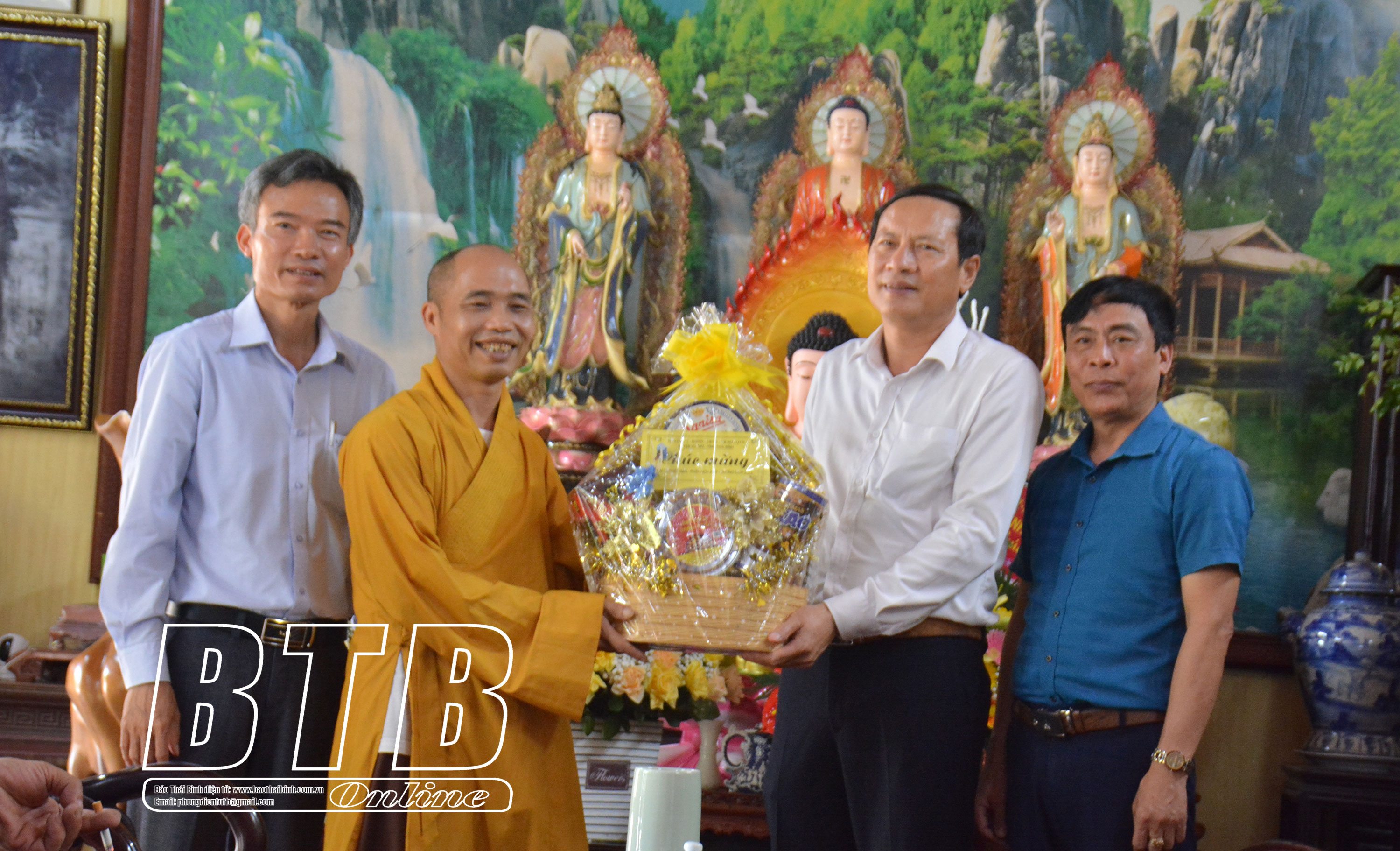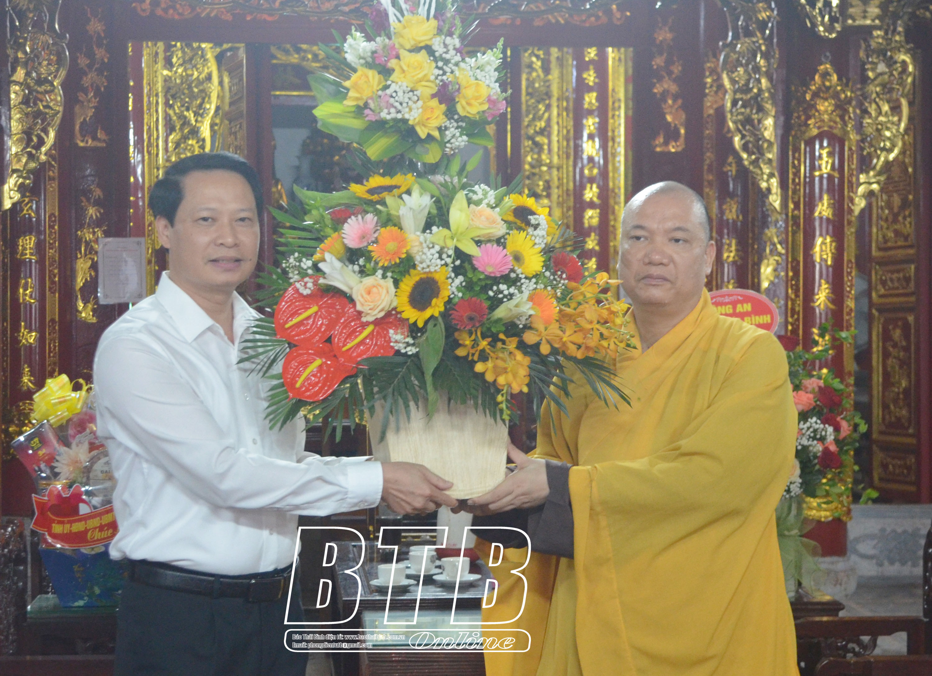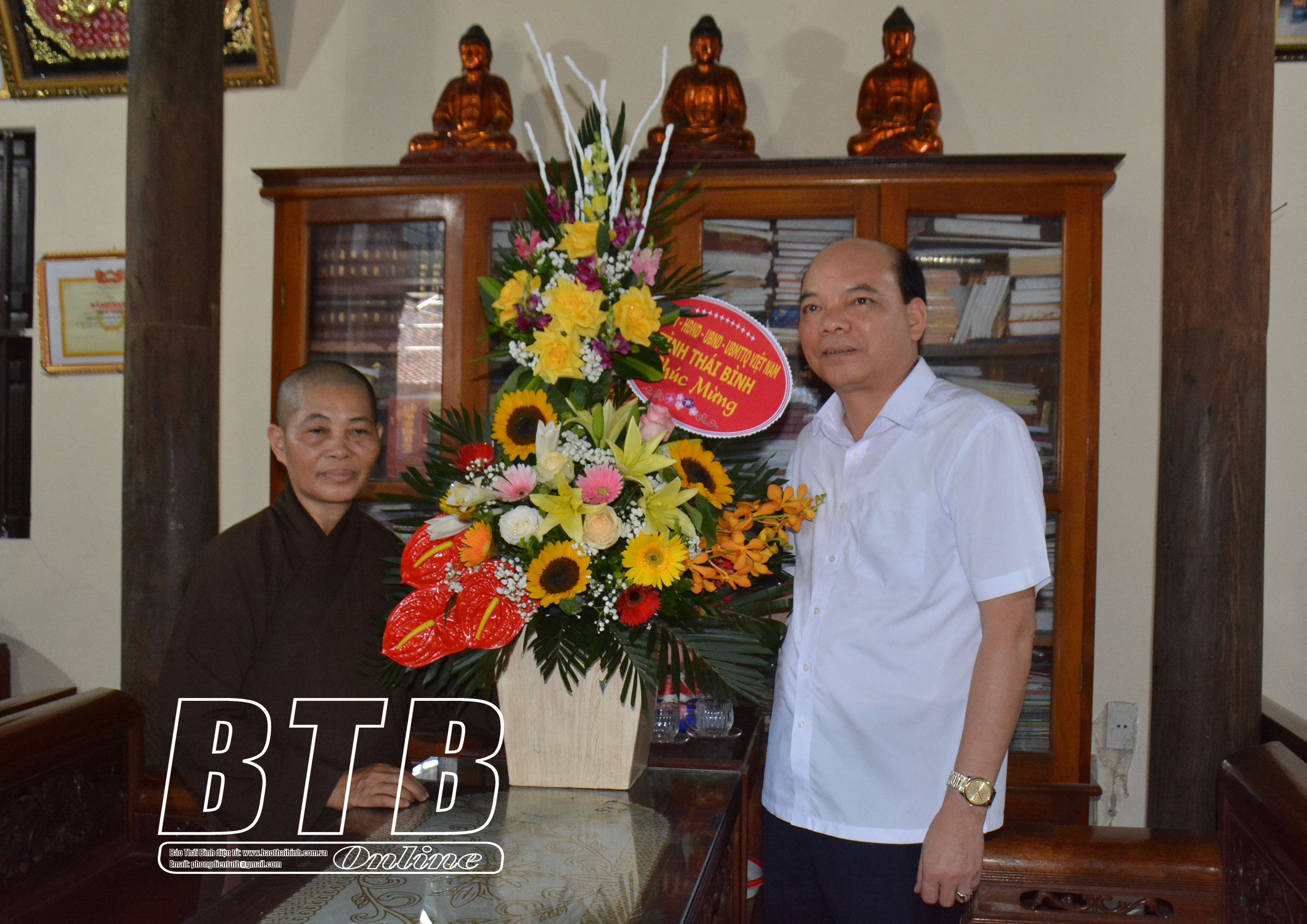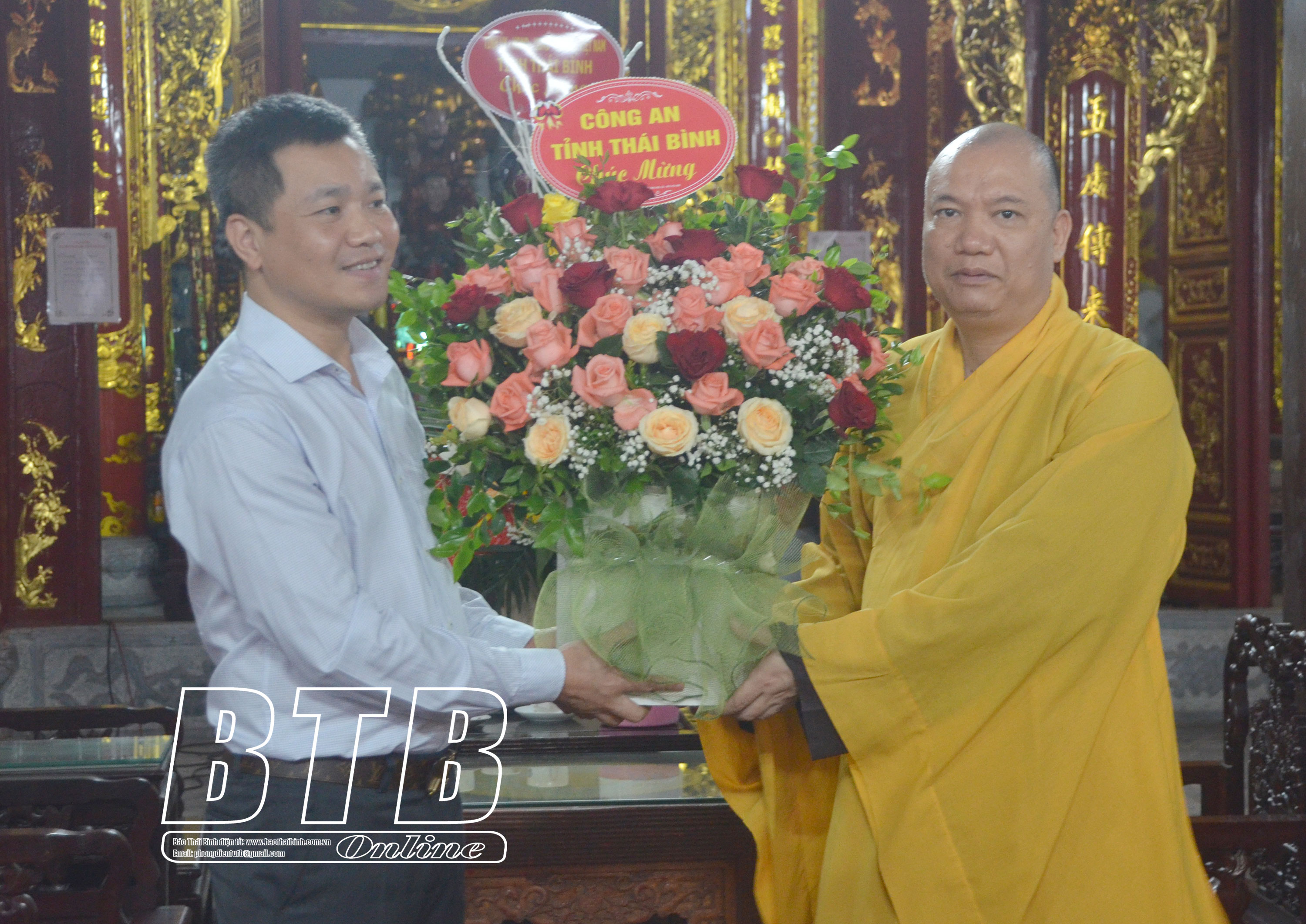 Thượng tá Trần Văn Phúc, Ủy viên Ban Thường vụ Tỉnh ủy, Giám đốc Công an tỉnh đã tới thăm, tặng quà, chúc mừng Thượng tọa Thích Thanh Vượng, Phó Trưởng ban thường trực Ban Trị sự GHPGVN tỉnh, trụ trì chùa Quan Âm, thị trấn Kiến Xương; Đại đức Thích Thanh Tùng, Trưởng ban Trị sự GHPGVN huyện Kiến Xương, trụ trì chùa Bảo Trai, xã Vũ Quý; Sư cô Thích Đàm Lương, Trưởng Phân ban Ni giới Ban Trị sự GHPGVN tỉnh, trụ trì chùa Thủy Vân, xã Minh Quang (Kiến Xương). Cùng đi có lãnh đạo Ủy ban MTTQ tỉnh, huyện Kiến Xương.