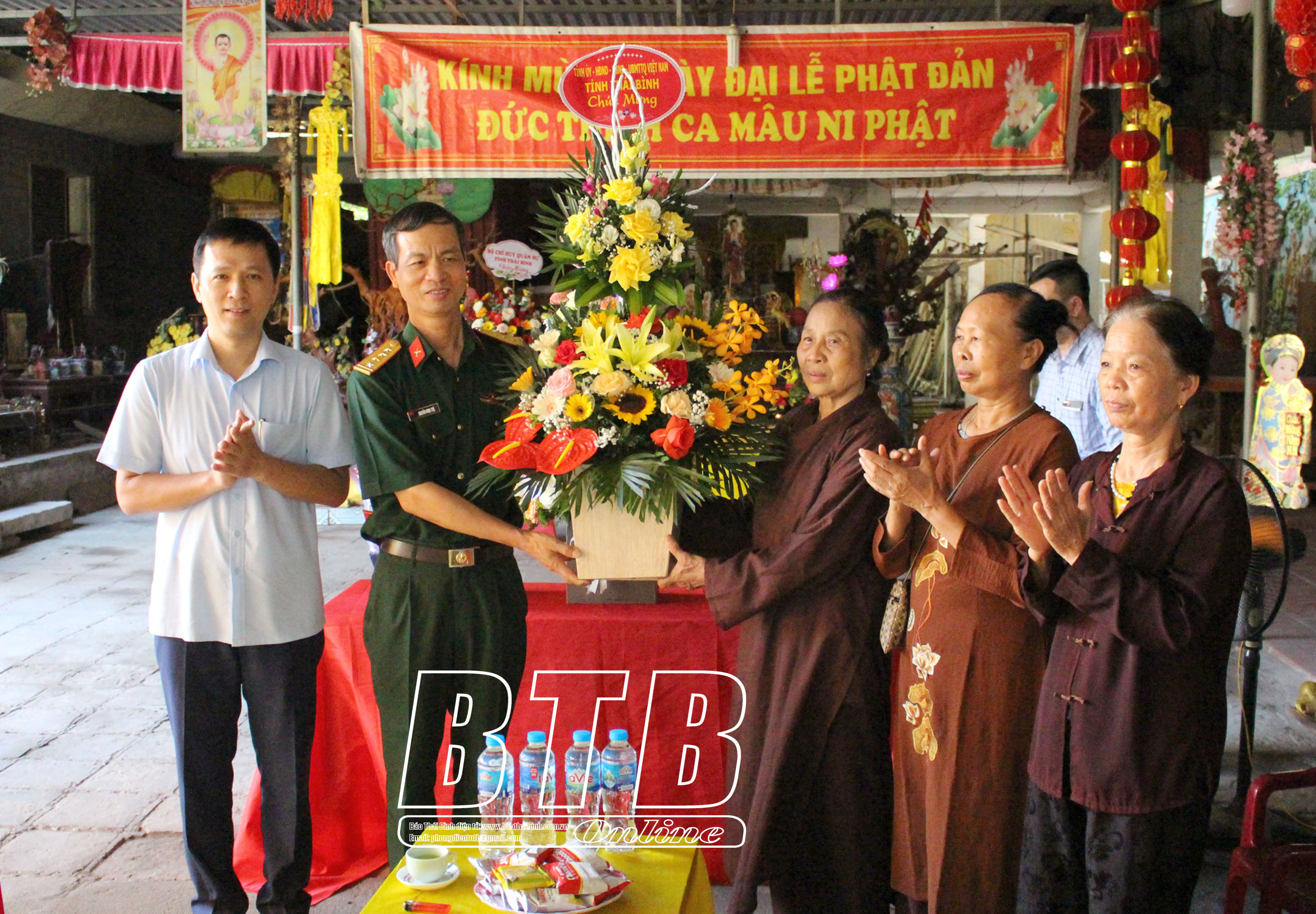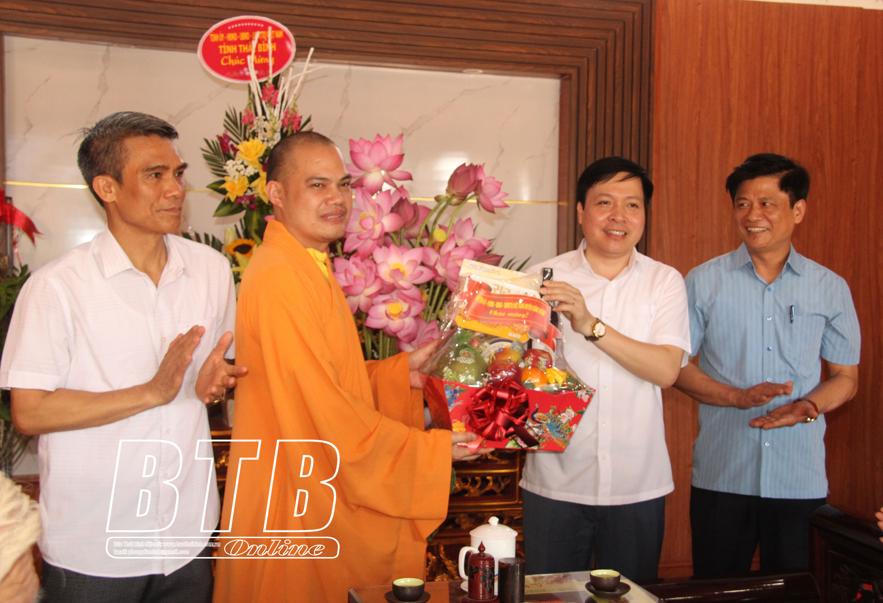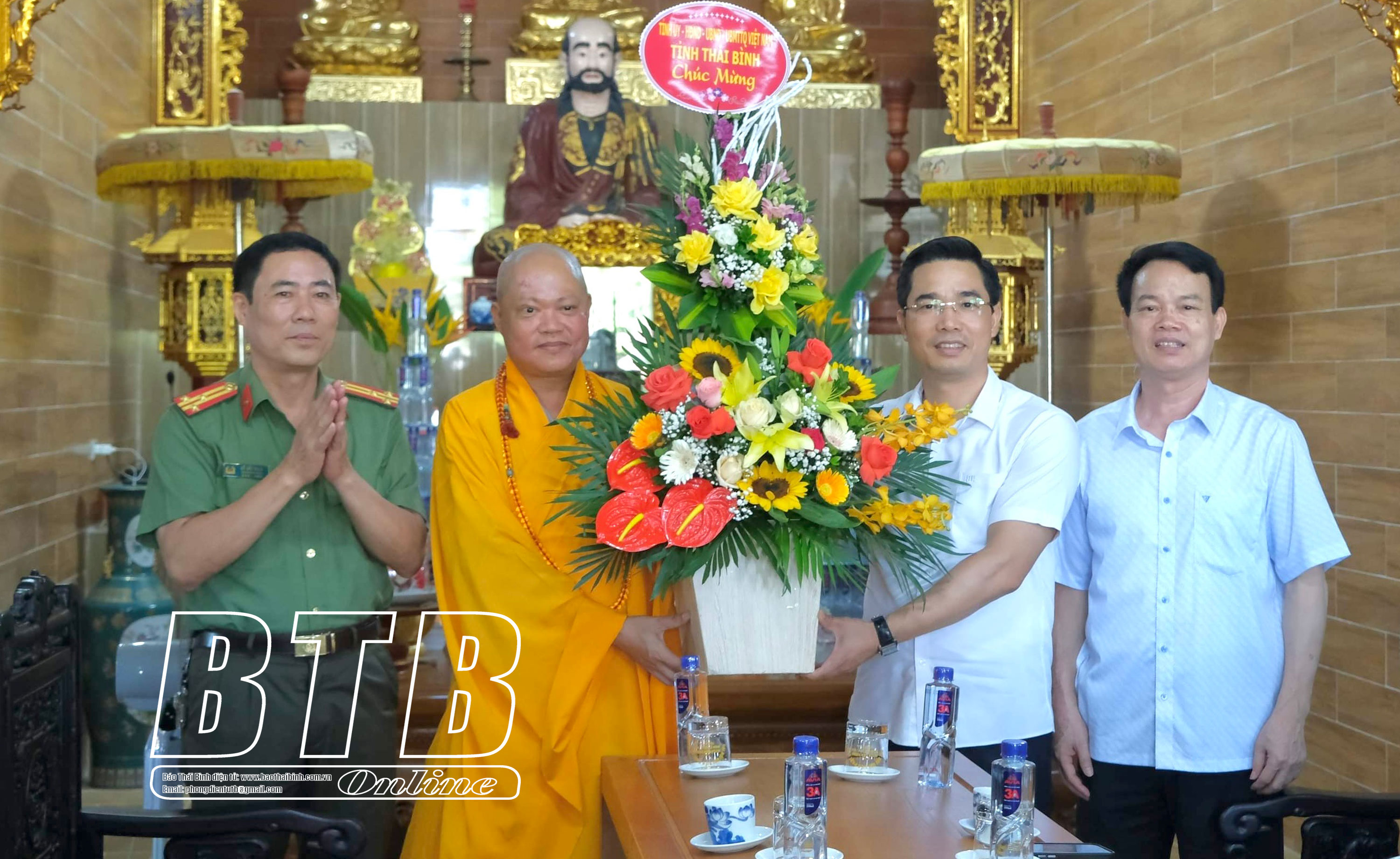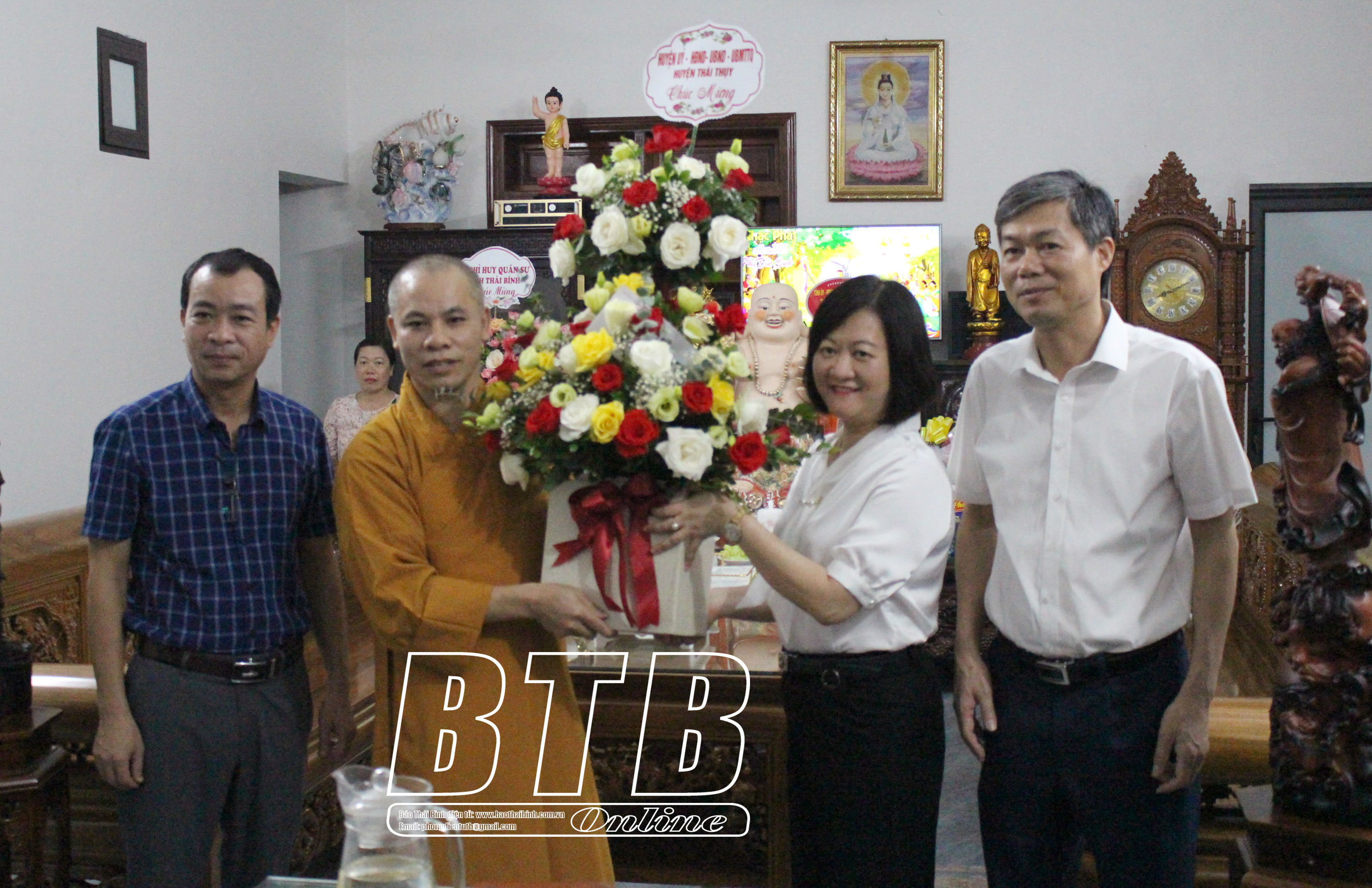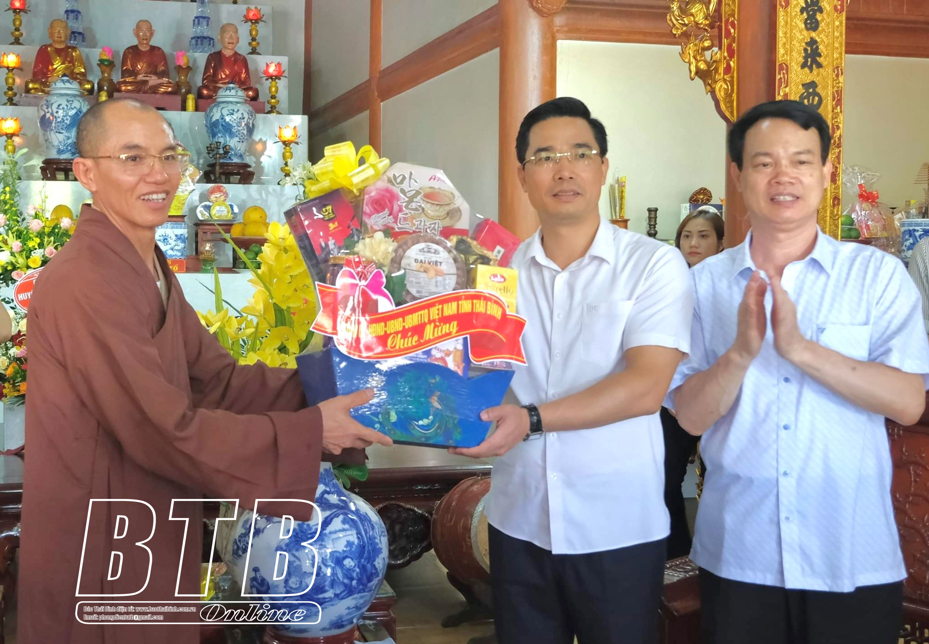 Các đồng chí: Nguyễn Quang Hưng, Ủy viên Ban Thường vụ Tỉnh ủy, Phó Chủ tịch thường trực UBND tỉnh; Đại tá Nguyễn Ngọc Tuệ, Ủy viên Ban Thường vụ Tỉnh ủy, Chỉ huy trưởng Bộ CHQS tỉnh đến thăm, chúc mừng các chức sắc, tăng ni, Phật tử tại huyện Thái Thụy.