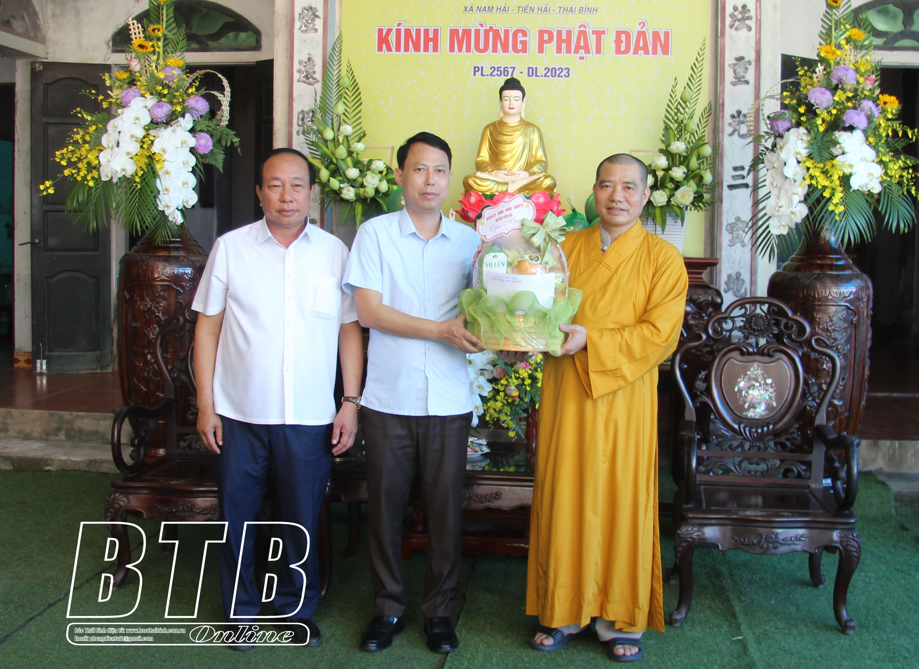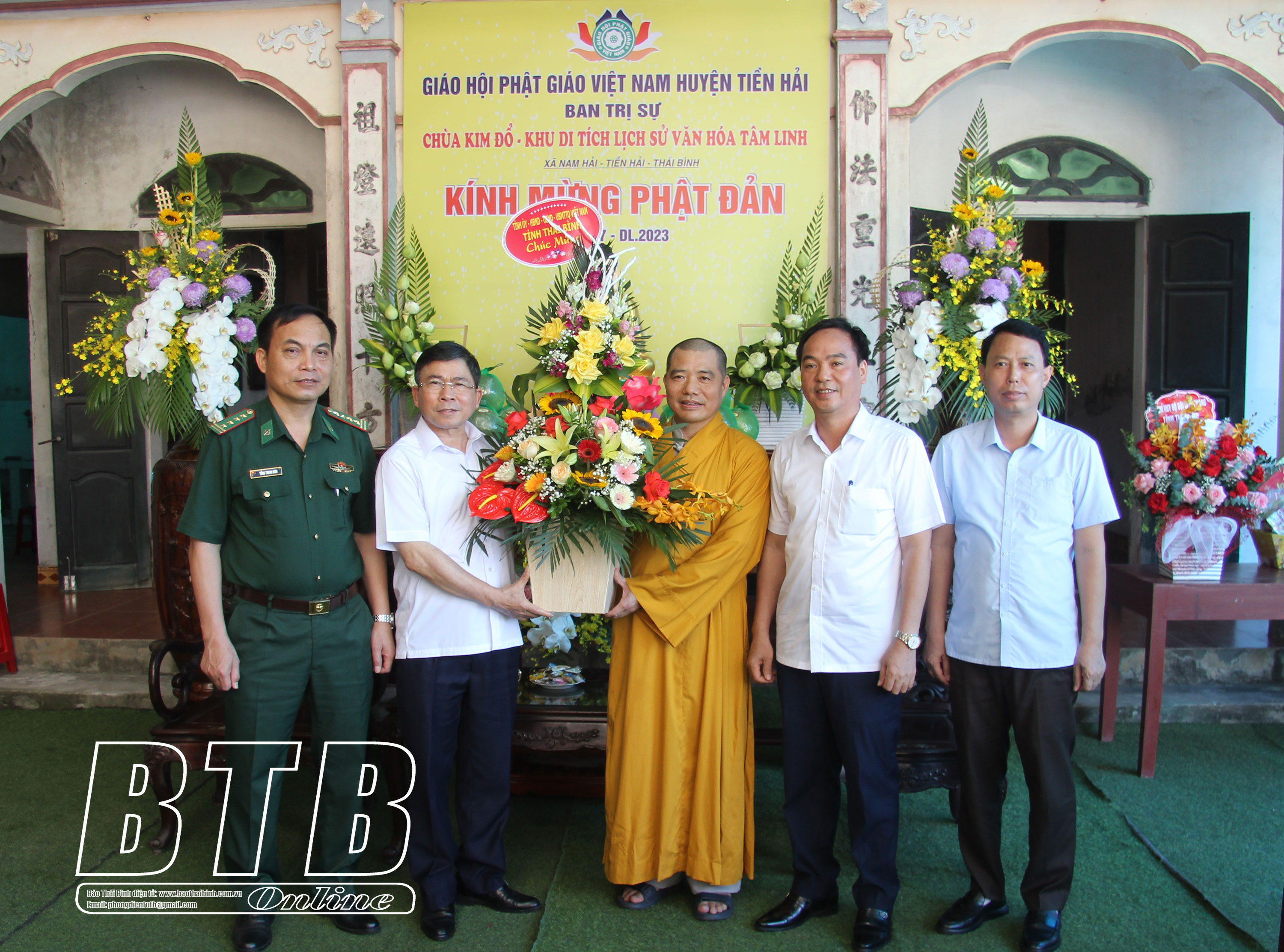 Các đồng chí: Phạm Văn Tuân, Ủy viên Ban Thường vụ, Trưởng ban Tổ chức Tỉnh ủy; Vũ Ngọc Trì, Tỉnh ủy viên, Phó Chủ tịch HĐND tỉnh; Tống Thanh Sơn, Tỉnh ủy viên, Chỉ huy trưởng Bộ Chỉ huy Bộ đội Biên phòng tỉnh đến thăm, chúc mừng Thượng tọa Thích Thanh Bản, Phó Trưởng ban Trị sự GHPGVN tỉnh, Trưởng ban Trị sự GHPGVN huyện Tiền Hải, trụ trì chùa Kim Đổ, xã Nam Hải; Đại đức Thích Thanh Vượng, Ủy viên Ban Trị sự GHPGVN tỉnh, Phó Trưởng ban Trị sự GHPGVN huyện Tiền Hải, trụ trì chùa Thiên Long, xã Nam Cường (Tiền Hải).