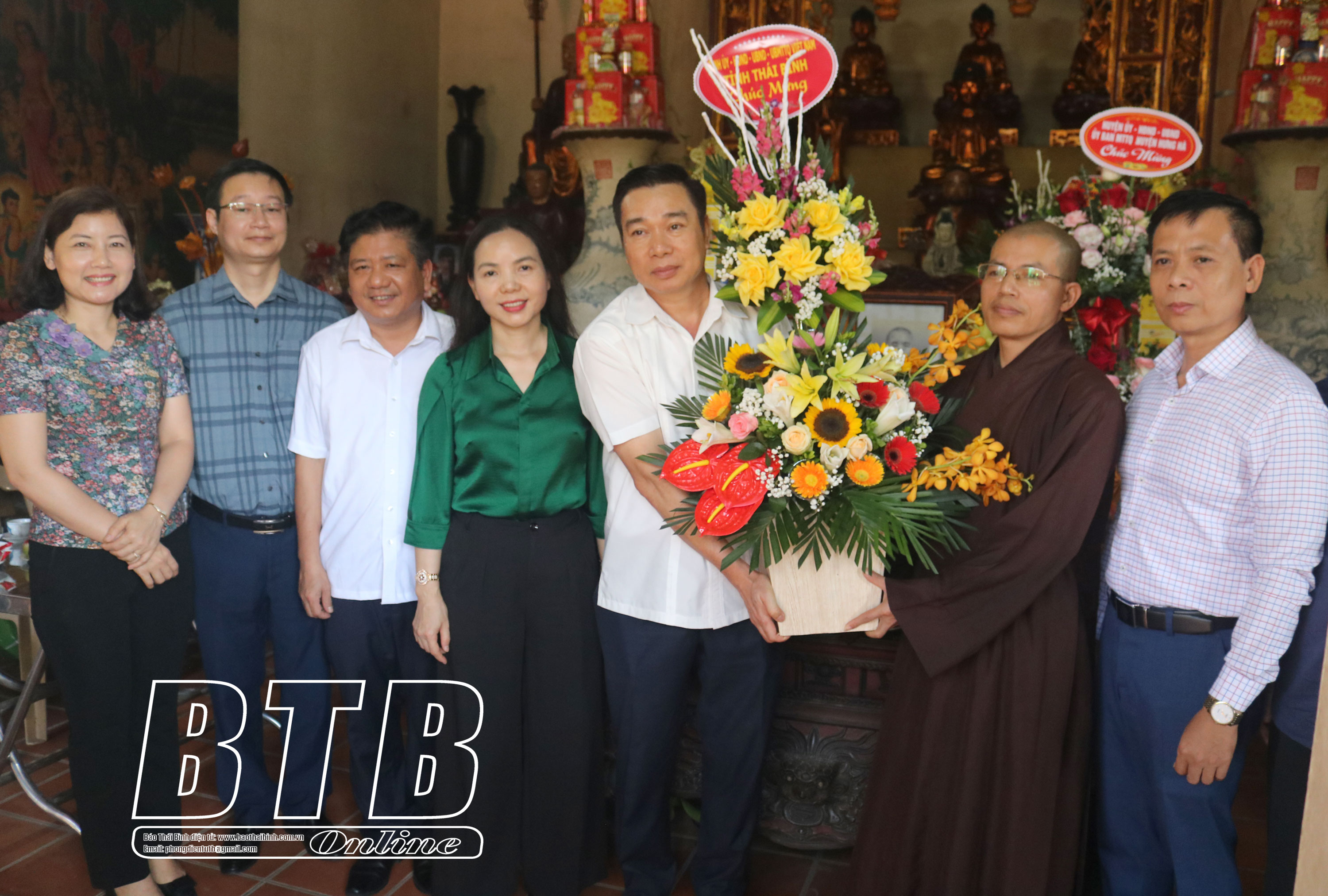 Các đồng chí: Nguyễn Văn Giang, Ủy viên Ban Thường vụ, Trưởng ban Dân vận Tỉnh ủy; Ngô Thị Kim Hoàn, Ủy viên Ban Thường vụ, Chủ nhiệm Ủy ban Kiểm tra Tỉnh ủy đã đến thăm, chúc mừng các vị chức sắc, tăng ni, tín đồ Phật tử trên địa bàn huyện Hưng Hà.
