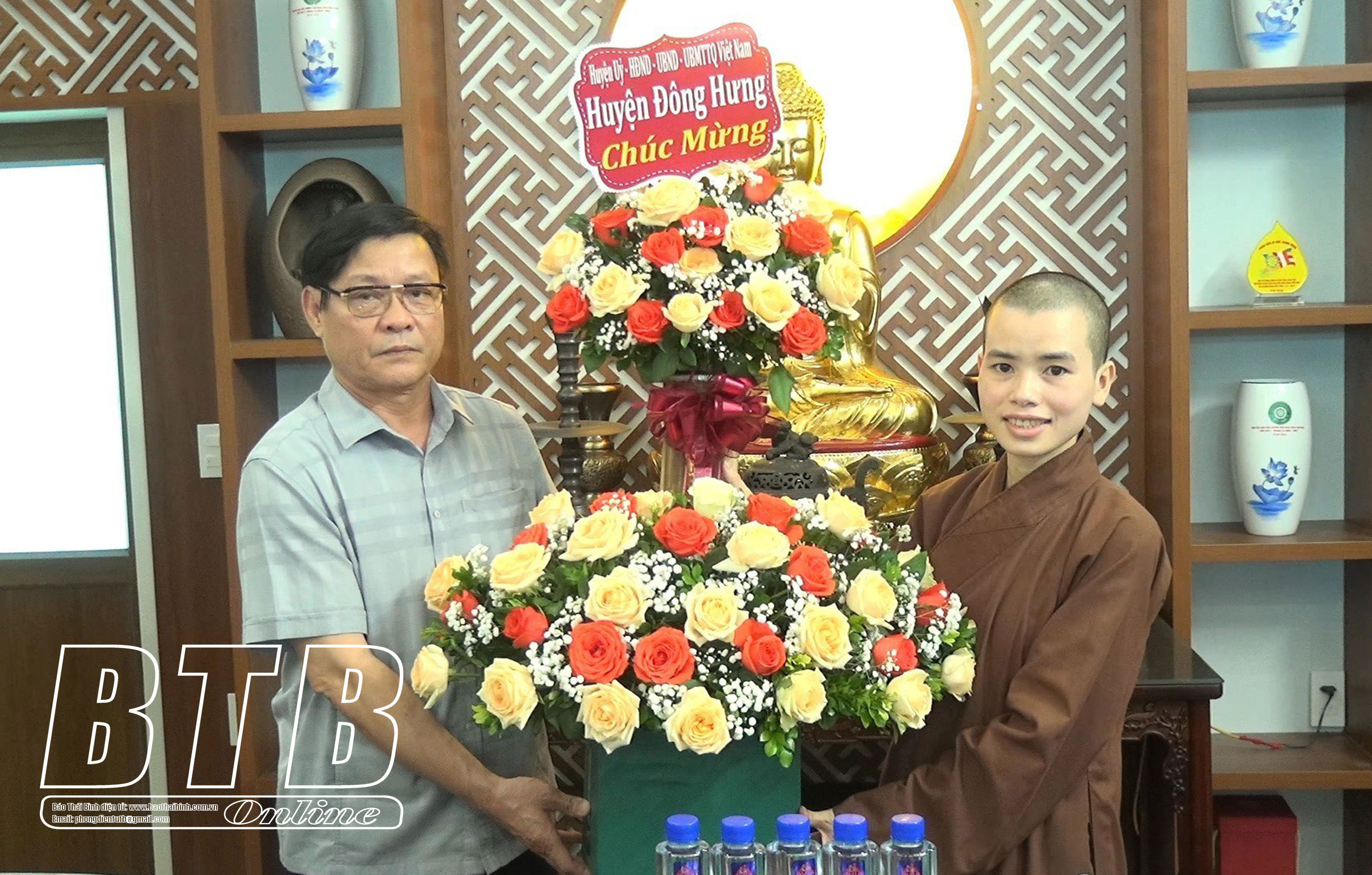 Các đồng chí: Vũ Thanh Vân, Ủy viên Ban Thường vụ Tỉnh ủy, Chủ tịch Ủy ban MTTQ tỉnh; Trần Thị Bích Hằng, Tỉnh ủy viên, Phó Chủ tịch UBND tỉnh cùng lãnh đạo huyện Đông Hưng đã tới thăm, chúc mừng các chức sắc, tăng ni, tín đồ Phật tử tại huyện.