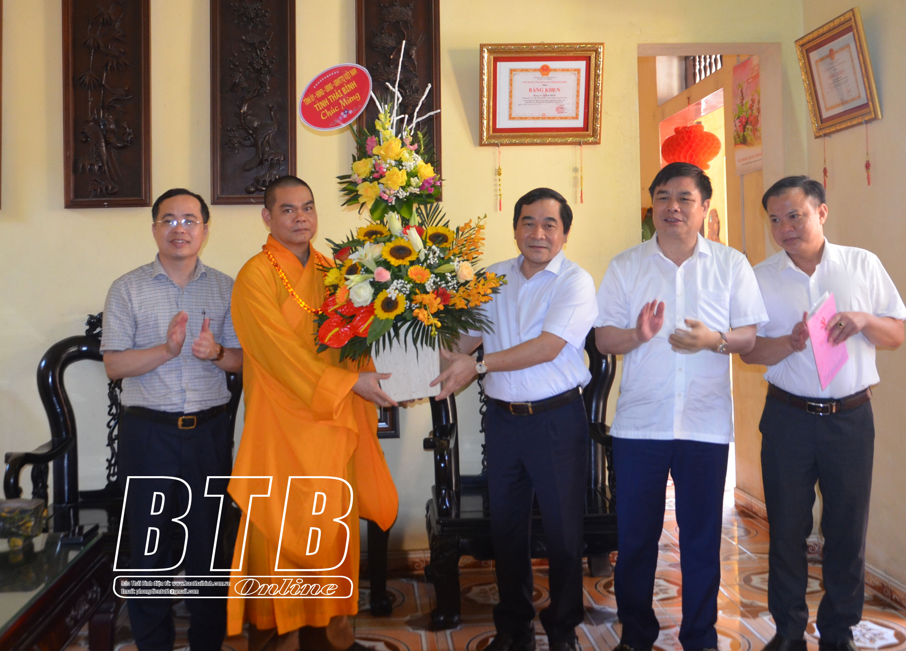 Thay mặt Tỉnh ủy, HĐND, UBND, Ủy ban MTTQ tỉnh, đồng chí Phó Bí thư thường trực Tỉnh ủy, Chủ tịch HĐND tỉnh chúc các vị chức sắc, tăng ni, Phật tử đón mùa đại lễ Phật đản hoan hỷ, an lạc và hạnh phúc. Đồng chí ghi nhận và đánh giá cao sự đóng góp, đồng hành của các vị chức sắc, tăng ni, Phật tử đối với sự phát triển kinh tế - xã hội, quốc phòng - an ninh của địa phương thời gian qua.
