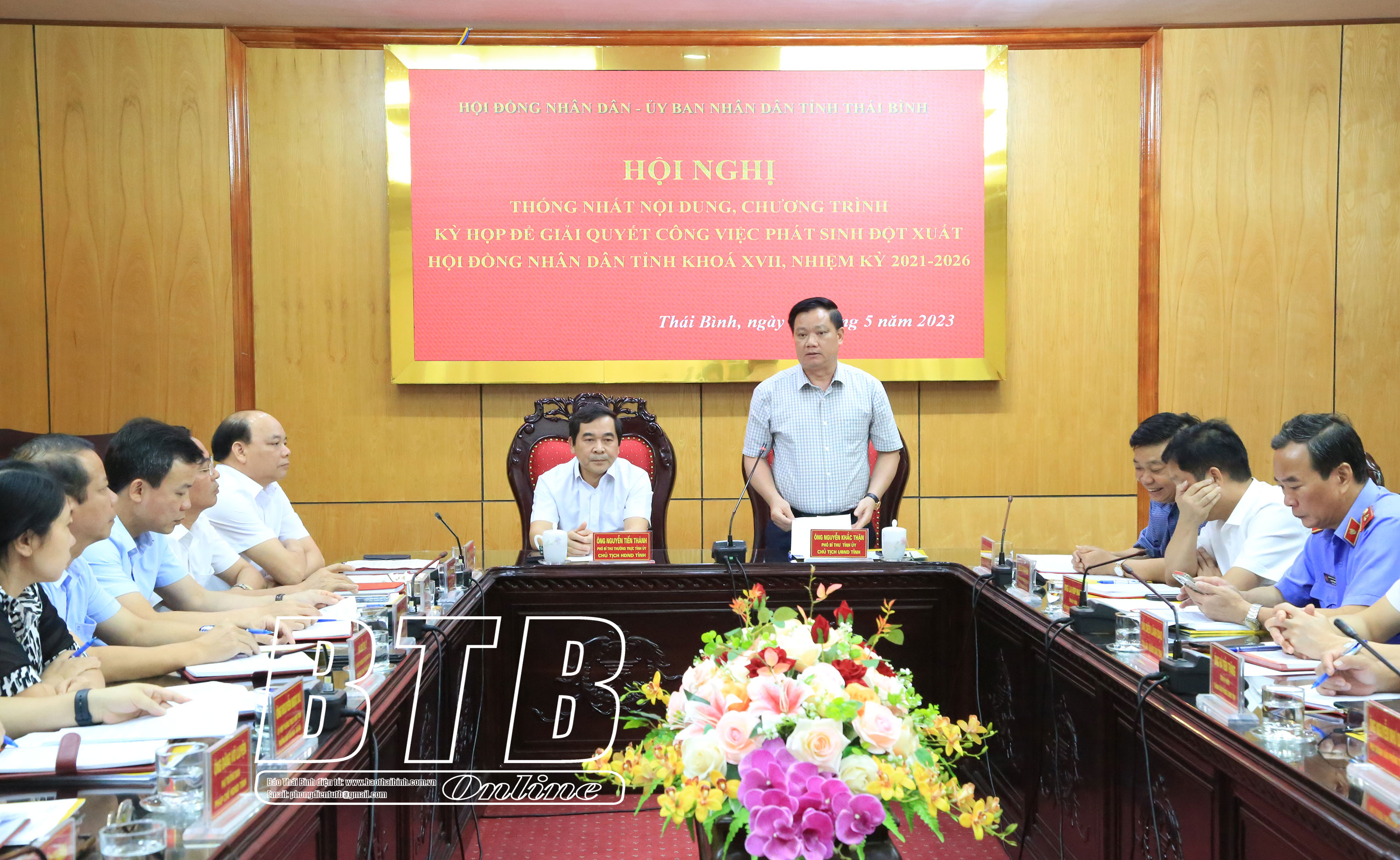Theo kế hoạch, kỳ họp giải quyết công việc phát sinh đột xuất của HĐND tỉnh sẽ xem xét, thảo luận, thông qua các tờ trình của UBND tỉnh về: Phê duyệt chủ trương đầu tư dự án hạ tầng kỹ thuật khu trung tâm thành phố Thái Bình tại phường Lê Hồng Phong và phường Bồ Xuyên, thành phố Thái Bình; phê duyệt chủ trương đầu tư dự án hạ tầng kỹ thuật khu cơ quan hành chính tỉnh tại phường Hoàng Diệu, thành phố Thái Bình; đề nghị bổ sung kế hoạch vốn đầu tư công trung hạn nguồn ngân sách tỉnh giai đoạn 2021 - 2025 (dự kiến cho 1 số dự án: CT.08; dự án cải tạo, sửa chữa cơ sở vật chất phục vụ di chuyển một số cơ quan, đơn vị khu vực ven sông Trà Lý); thông qua đồ án quy hoạch phân khu xây dựng tỷ lệ 1/2.000 khu công nghiệp Hưng Phú, huyện Tiền Hải; thông qua chương trình phát triển nhà ở tỉnh Thái Bình giai đoạn 2021 - 2030; phân bổ kế hoạch vốn sự nghiệp nguồn ngân sách trung ương hỗ trợ thực hiện chương trình mục tiêu quốc gia xây dựng nông thôn mới năm 2023; phân bổ kế hoạch vốn sự nghiệp nguồn ngân sách trung ương hỗ trợ thực hiện chương trình mục tiêu quốc gia giảm nghèo bền vững năm 2023. Kỳ họp cũng sẽ xem xét, quyết định một số nội dung quan trọng khác thuộc thẩm quyền của HĐND tỉnh.