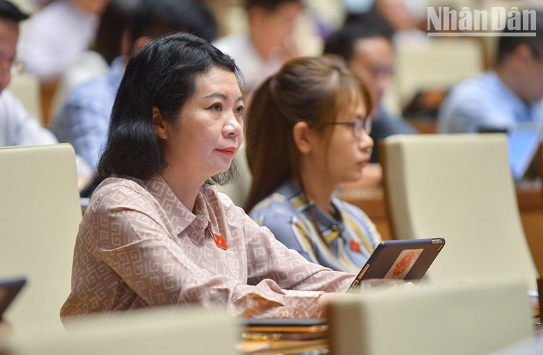 Đại biểu Nguyễn Trúc Anh - Đoàn đại biểu Quốc hội TP Hà Nội phát biểu tranh luận. (Ảnh: THỦY NGUYÊN).