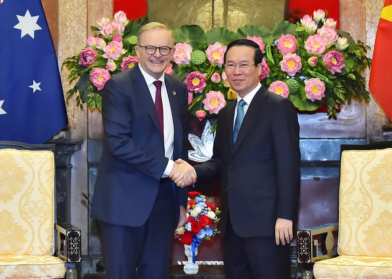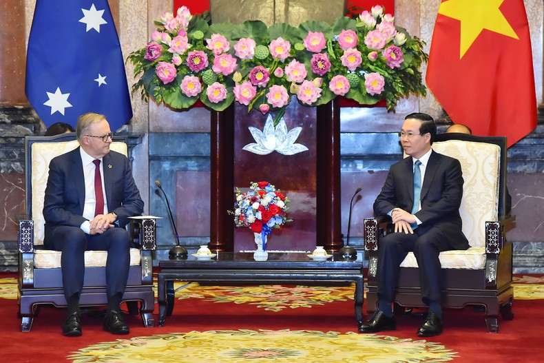 Chủ tịch nước Võ Văn Thưởng hoan nghênh Ngài Anthony Albanese lần đầu tiên sang thăm chính thức Việt Nam trên cương vị Thủ tướng; nhấn mạnh cùng với chuyến thăm Việt Nam tháng 4/2023 của Toàn quyền Australia David Hurley, chuyến thăm lần này của Thủ tướng Anthony Albanese đã góp phần tạo xung lực mới cho quan hệ Đối tác Chiến lược trong bối cảnh hai nước đang kỷ niệm 50 năm thiết lập quan hệ ngoại giao (1973-2023).