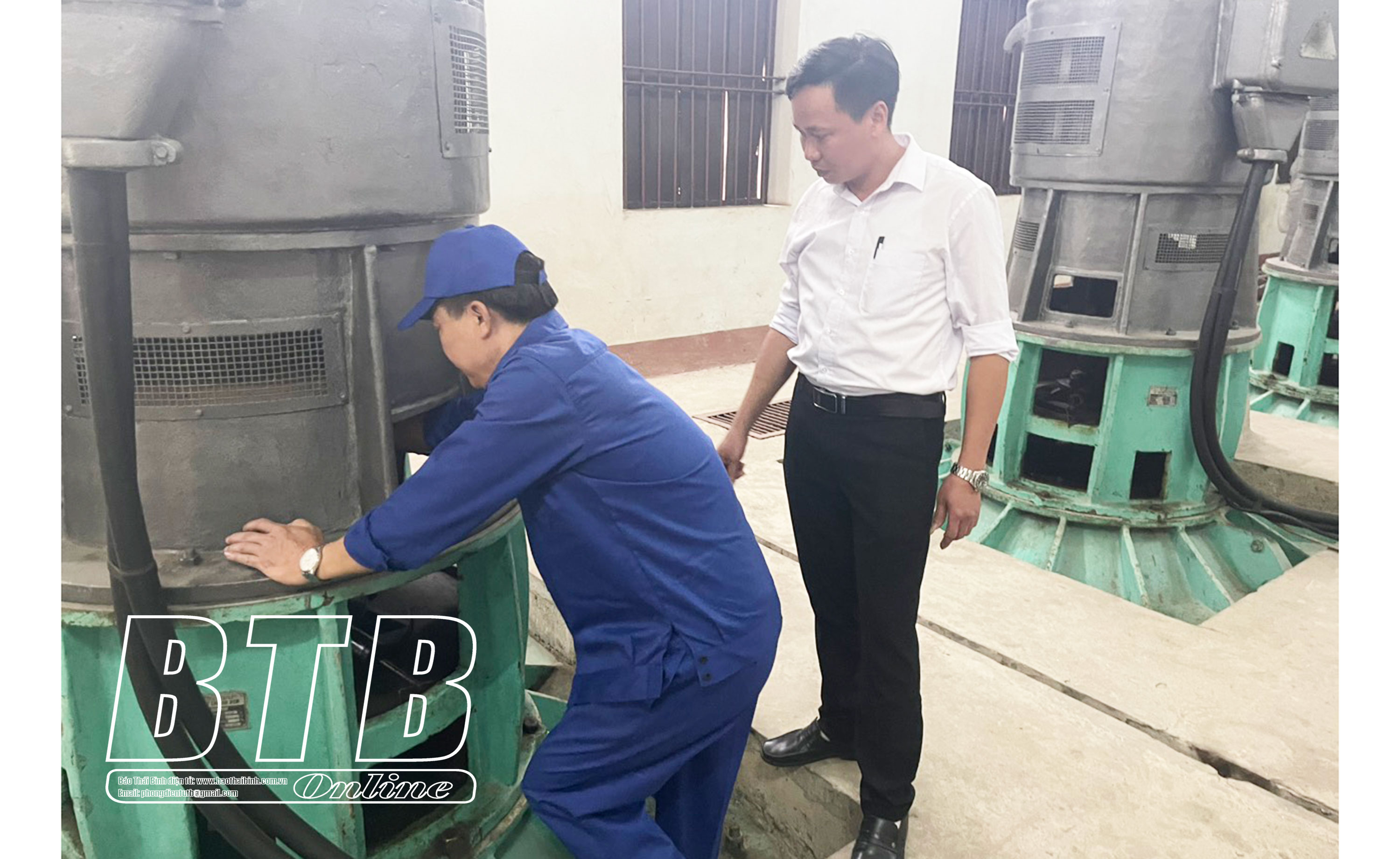 Xí nghiệp Khai thác công trình thủy lợi huyện Hưng Hà tu sửa trạm bơm sẵn sàng tiêu úng khi có mưa lũ xảy ra.