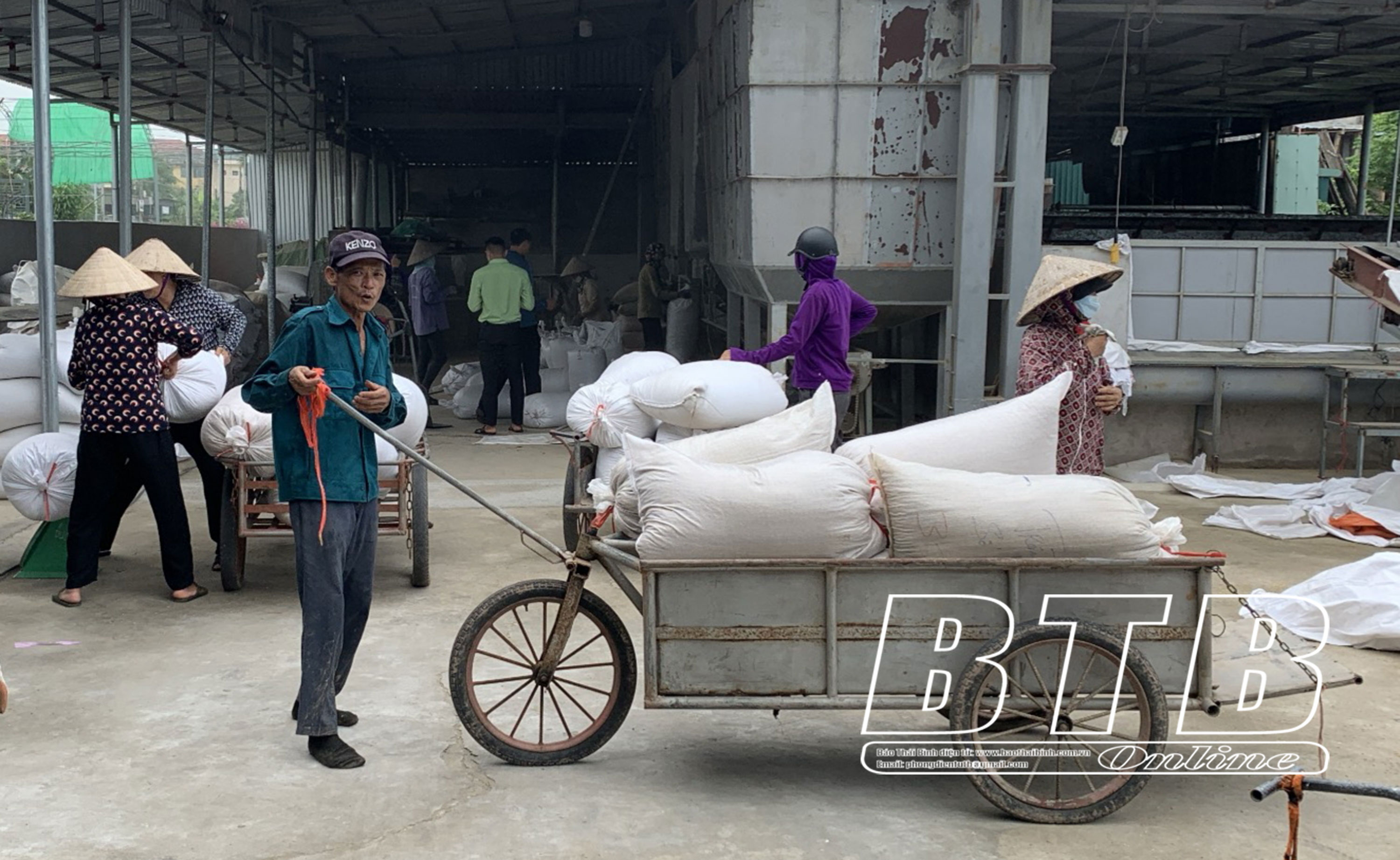 Nông dân xã Bình Thanh bán thóc cho doanh nghiệp thu mua sau thu hoạch.