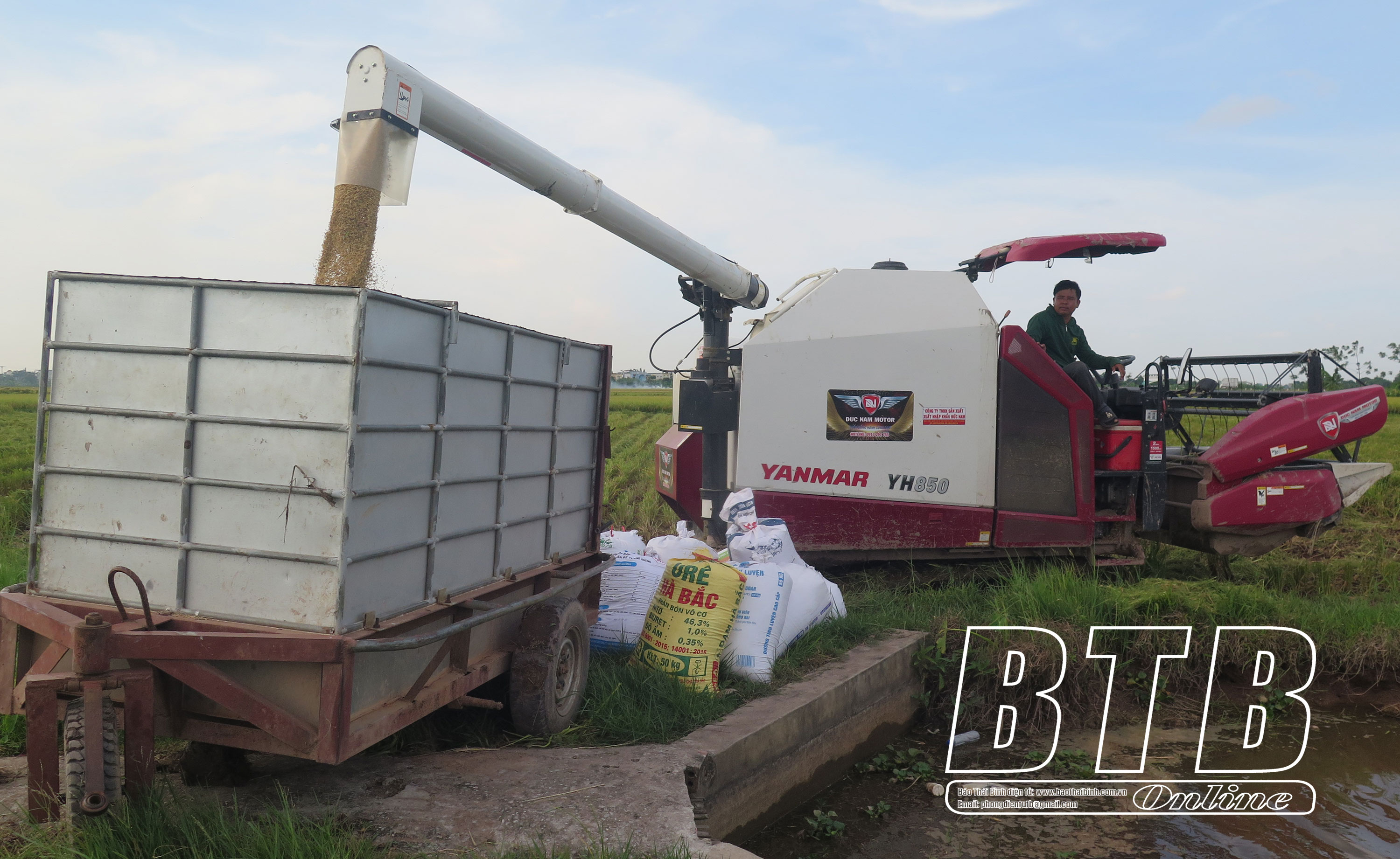 HTX Sản xuất kinh doanh nông sản Quang Lanh đầu tư hệ thống máy gặt hiện đại thu hoạch lúa.