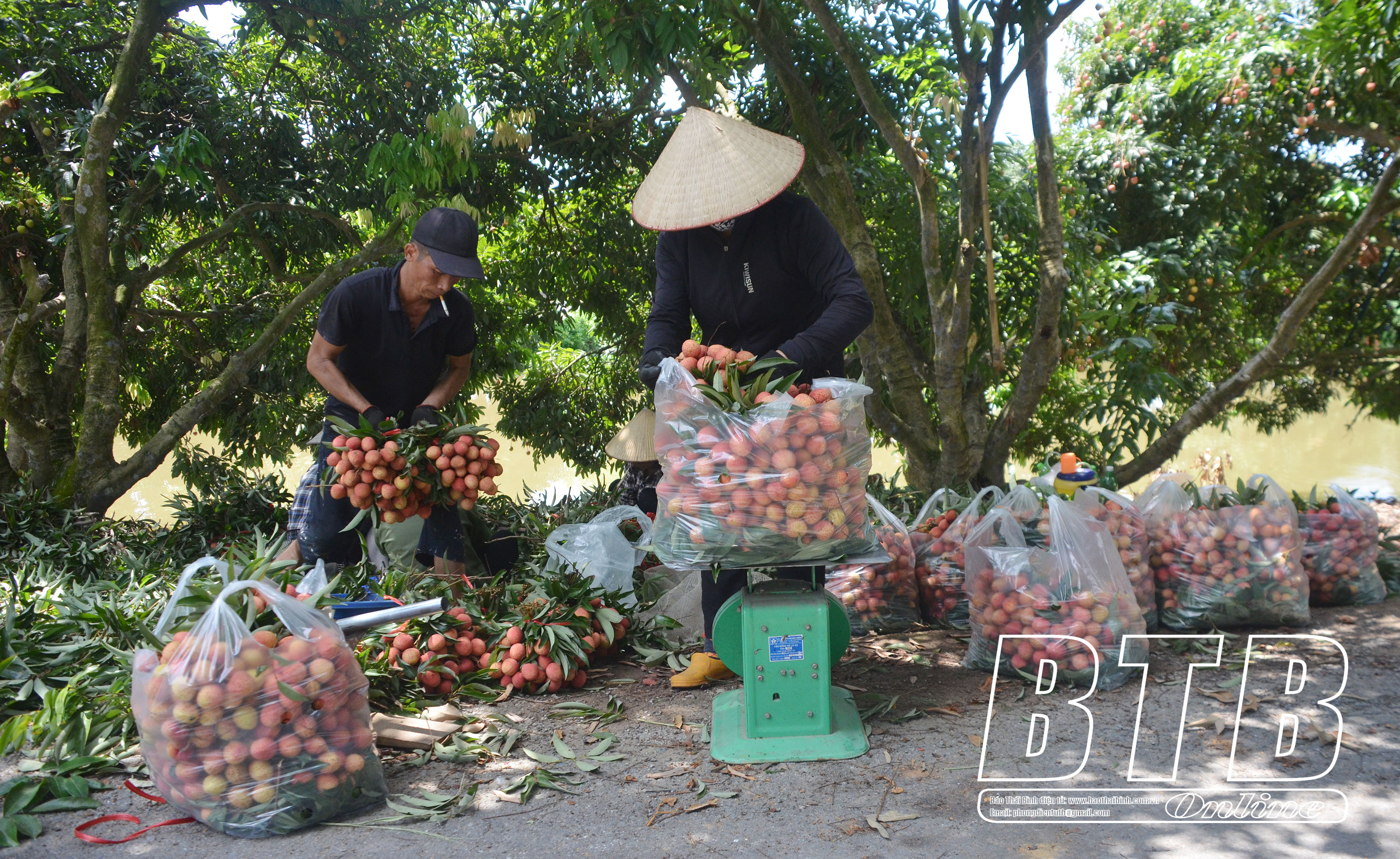 Vải trứng chín sớm tô đỏ cả một khúc sông Minh Hồng, thôn Thượng Xá, xã Quỳnh Minh (Quỳnh Phụ).