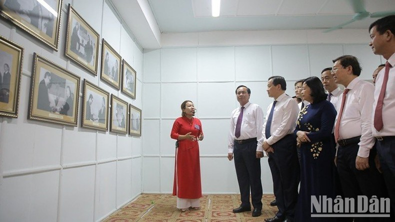 Các đồng chí Lê Minh Khái, Bùi Thị Minh Hoài cùng lãnh đạo các bộ, ngành Trung ương và địa phương thăm Di tích Trụ sở Chính phủ cách mạng lâm thời Cộng hòa miền nam Việt Nam tại huyện Cam Lộ.