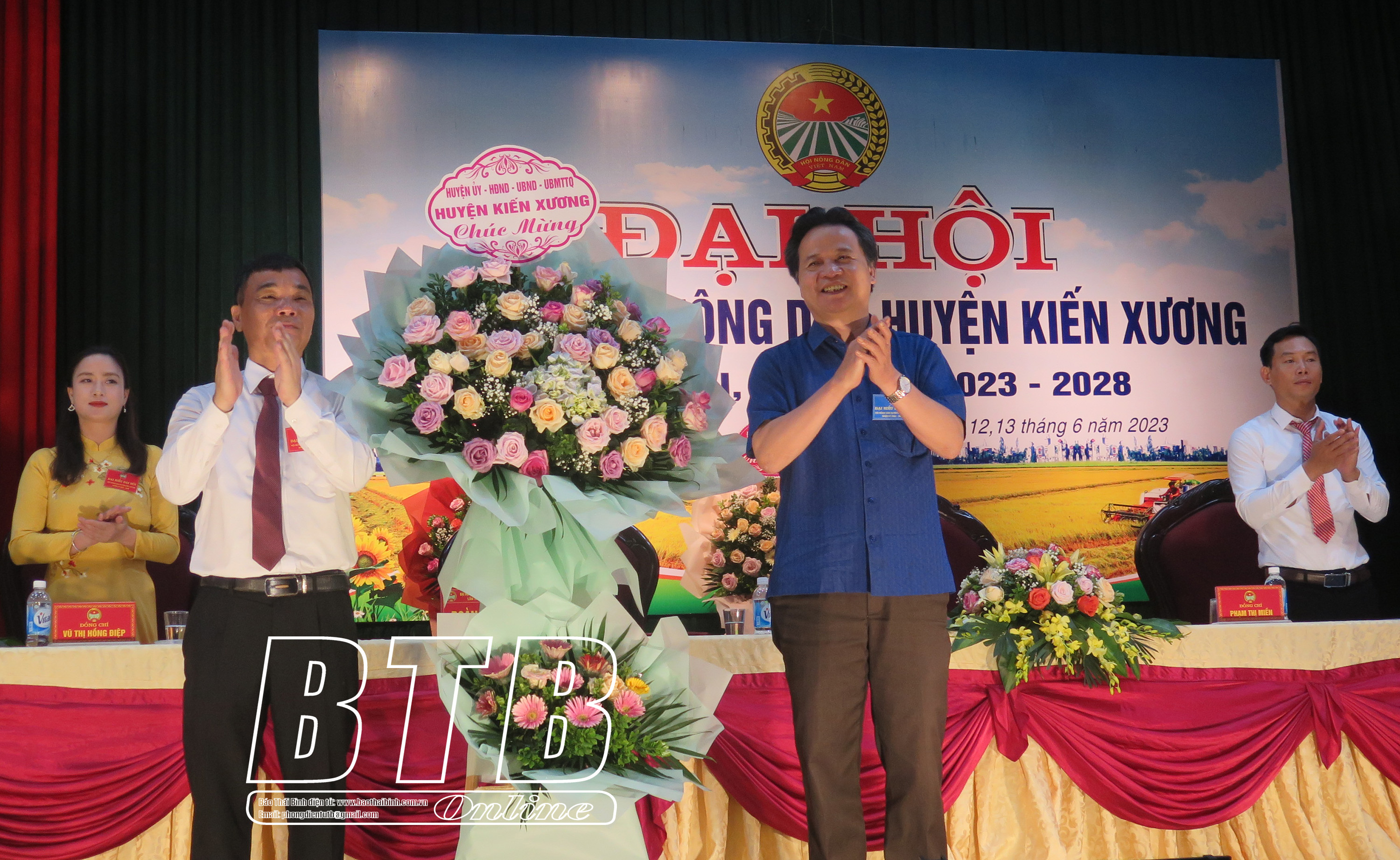 Lãnh đạo huyện Kiến Xương tặng hoa chúc mừng Đại hội.