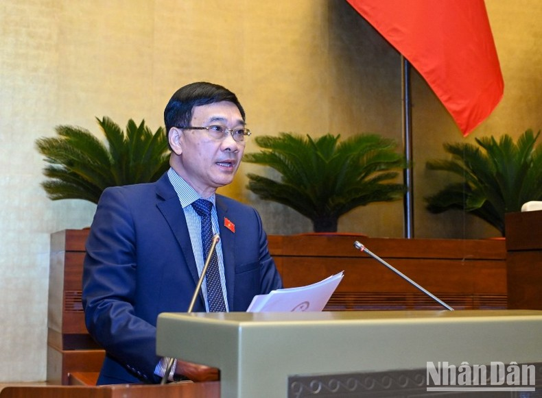 Chủ nhiệm Ủy ban Kinh tế của Quốc hội Vũ Hồng Thanh trình bày báo cáo. (Ảnh: DUY LINH).