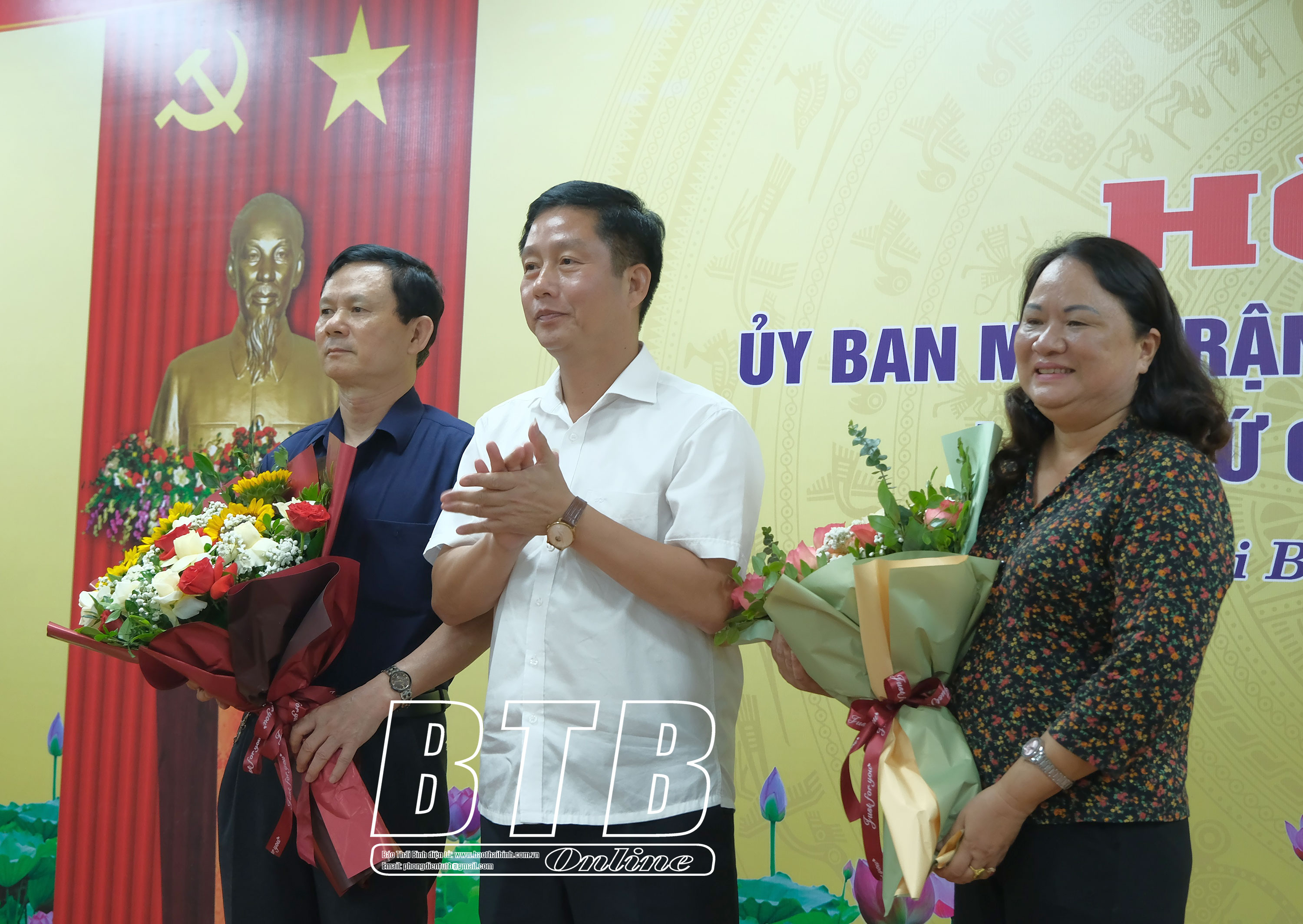 Các đồng chí: Nguyễn Tiến Thành, Phó Bí thư thường trực Tỉnh ủy, Chủ tịch HĐND tỉnh; Vũ Thanh Vân, Ủy viên Ban Thường vụ Tỉnh ủy, Chủ tịch Ủy ban MTTQ tỉnh dự hội nghị.