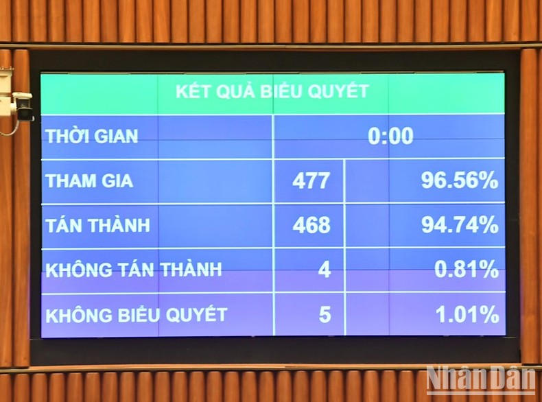 Kết quả biểu quyết cho thấy, có 468/477 đại biểu Quốc hội tham gia biểu quyết thông qua luật này, đạt tỷ lệ 94,74%.