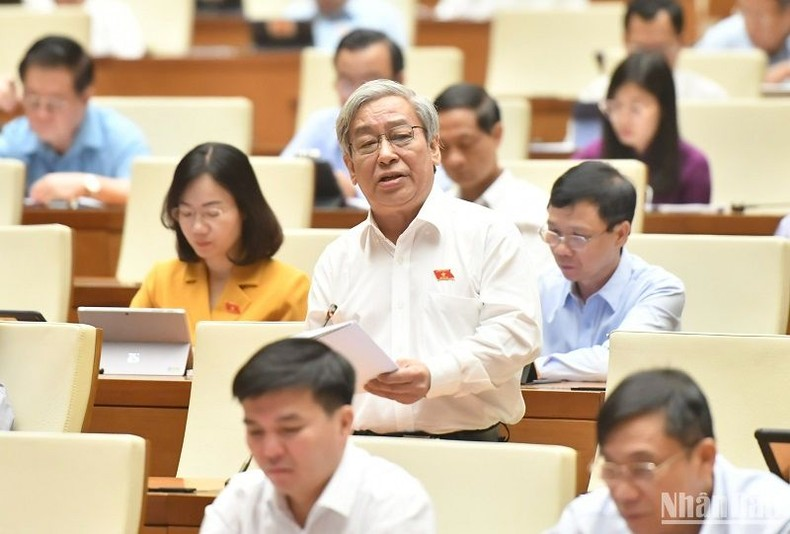 Đại biểu Quốc hội góp ý vào dự thảo Luật. (Ảnh: ĐĂNG KHOA).