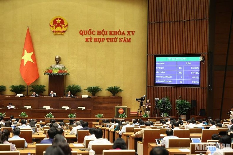Quốc hội thông qua Luật Đấu thầu (sửa đổi) với tỷ lệ tán thành đạt 93,12%. (Ảnh: DUY LINH).