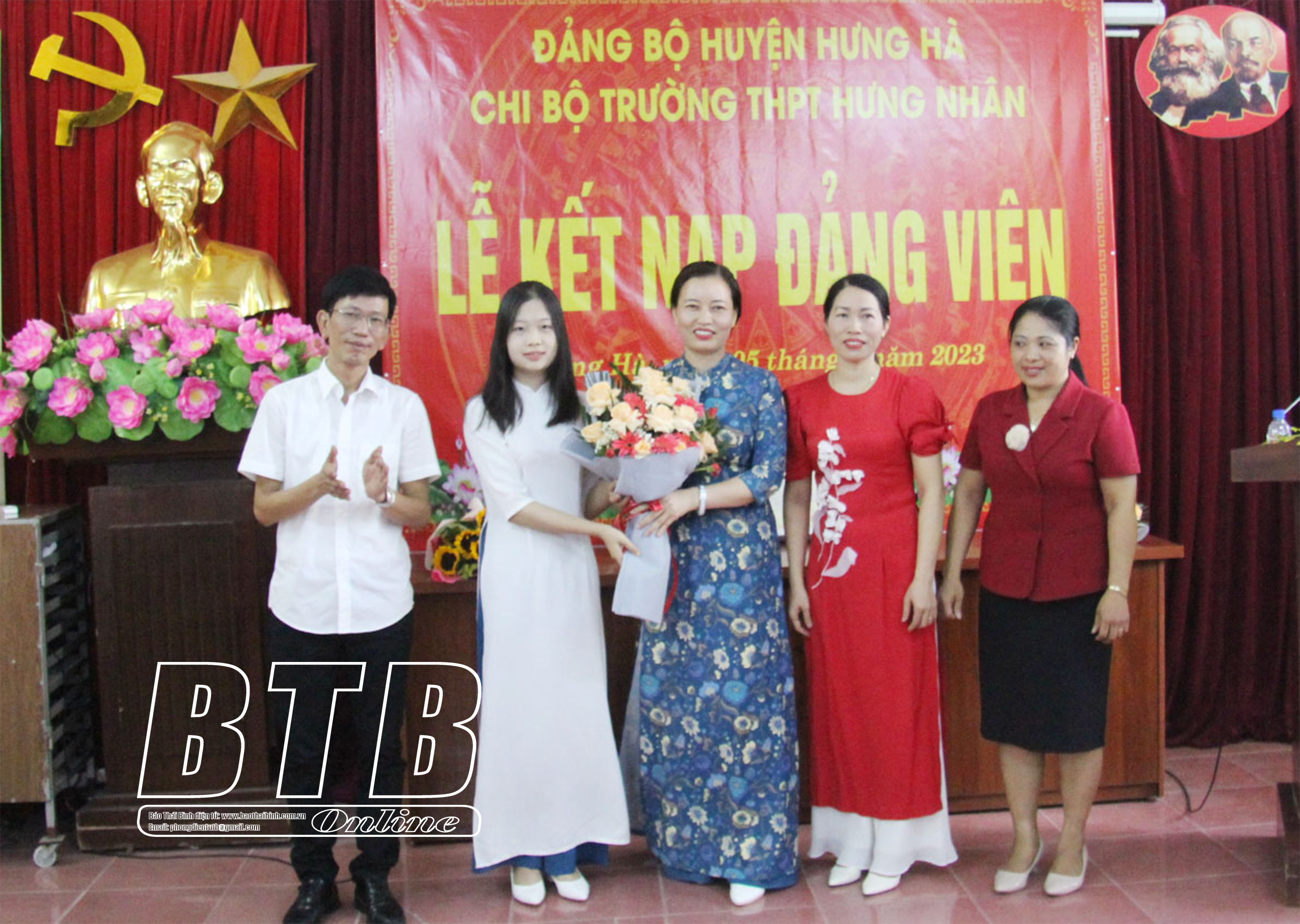 Chi bộ Trường THPT Hưng Nhân chúc mừng đảng viên Nguyễn Khánh Linh.