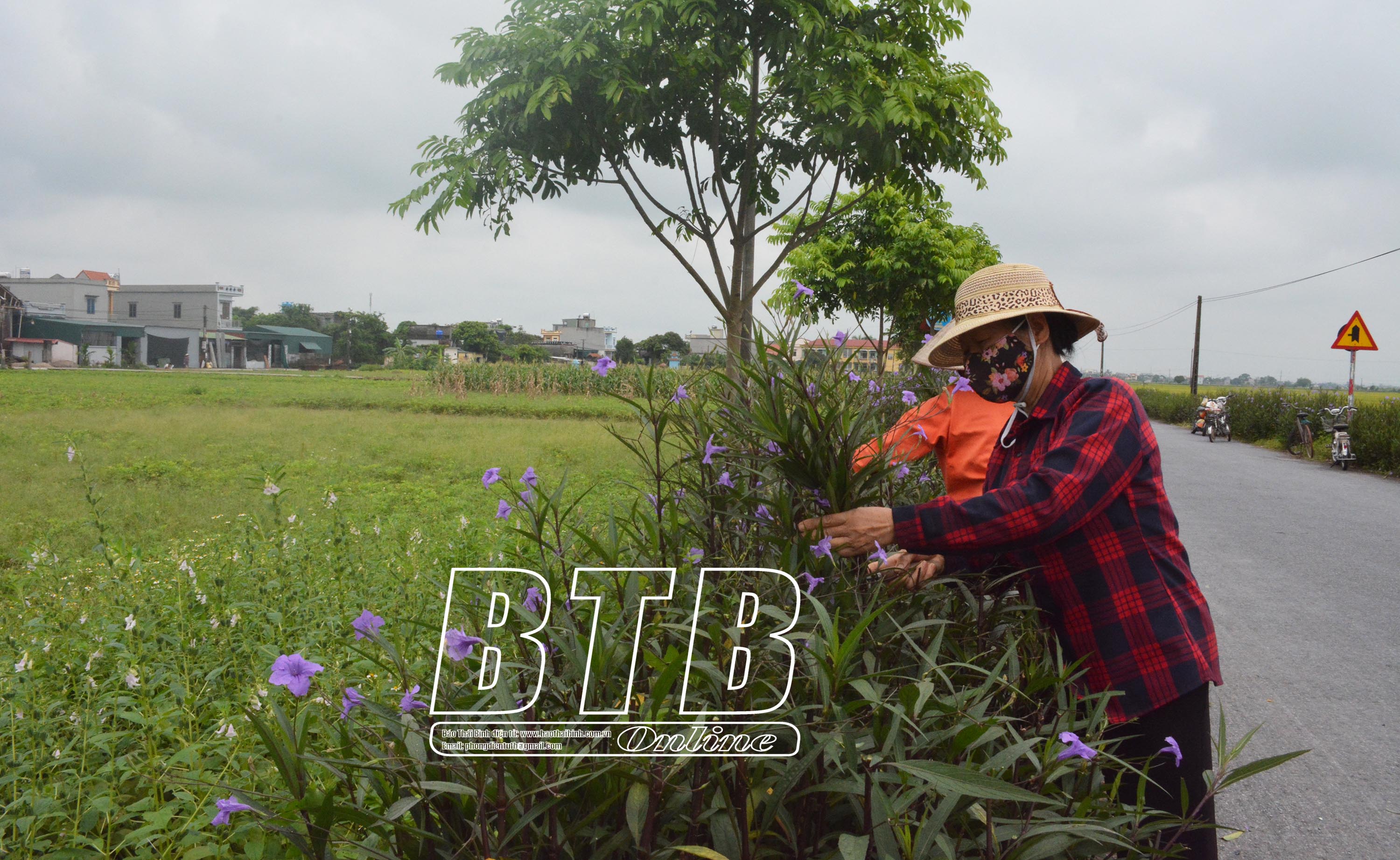 Phụ nữ xã Tân Hòa (Vũ Thư) chăm sóc đường hoa.