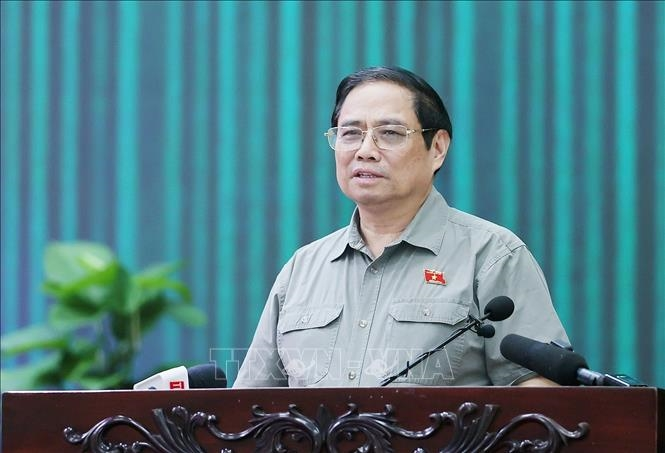 Thủ tướng Phạm Minh Chính phát biểu tại buổi tiếp xúc cử tri. (Ảnh: Dương Giang-TTXVN).