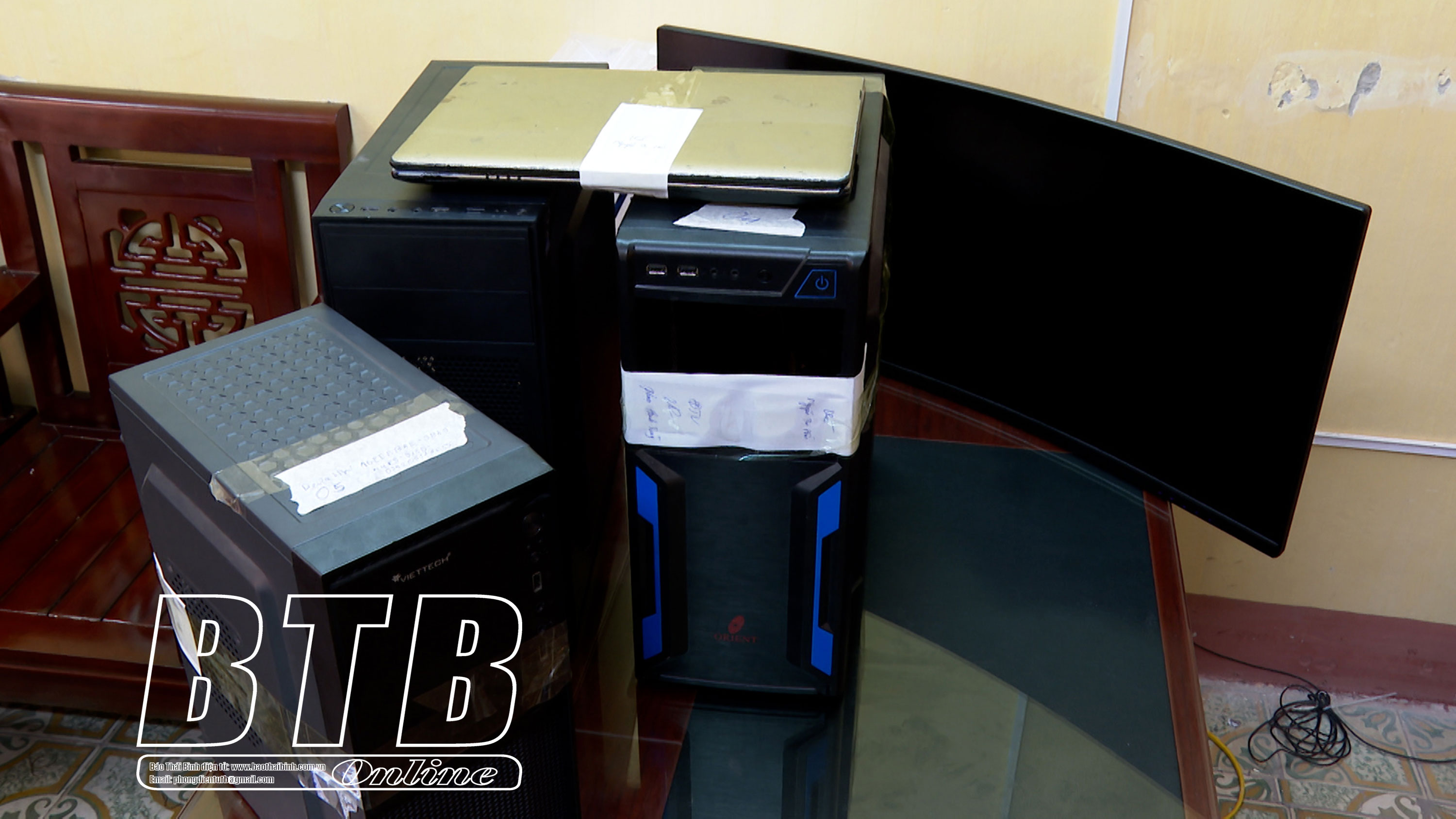 Căn cứ tài liệu xác minh, thu thập được, ngày 5/7/2023, Giám đốc Công an tỉnh đã chỉ đạo Phòng An ninh mạng và Phòng, chống tội phạm sử dụng công nghệ cao phối hợp Văn phòng Cơ quan Cảnh sát điều tra Công an tỉnh thành lập 12 tổ công tác phối hợp với Công an thành phố Hà Nội triệu tập 17 đối tượng; khám xét khẩn cấp chỗ ở đối với 14 đối tượng. Thu giữ, quản lý, niêm phong các đồ vật, tài sản, tài liệu gồm: 4 xe ô tô, 31 điện thoại, 12 máy tính laptop, 8 case máy tính, 8 đồng hồ, 20 cây vàng và 2 vòng vàng, 4 sổ tiết kiệm có tổng số tiền là 2.580.000.000 đồng và tiền mặt là 7.482.905.000 đồng.