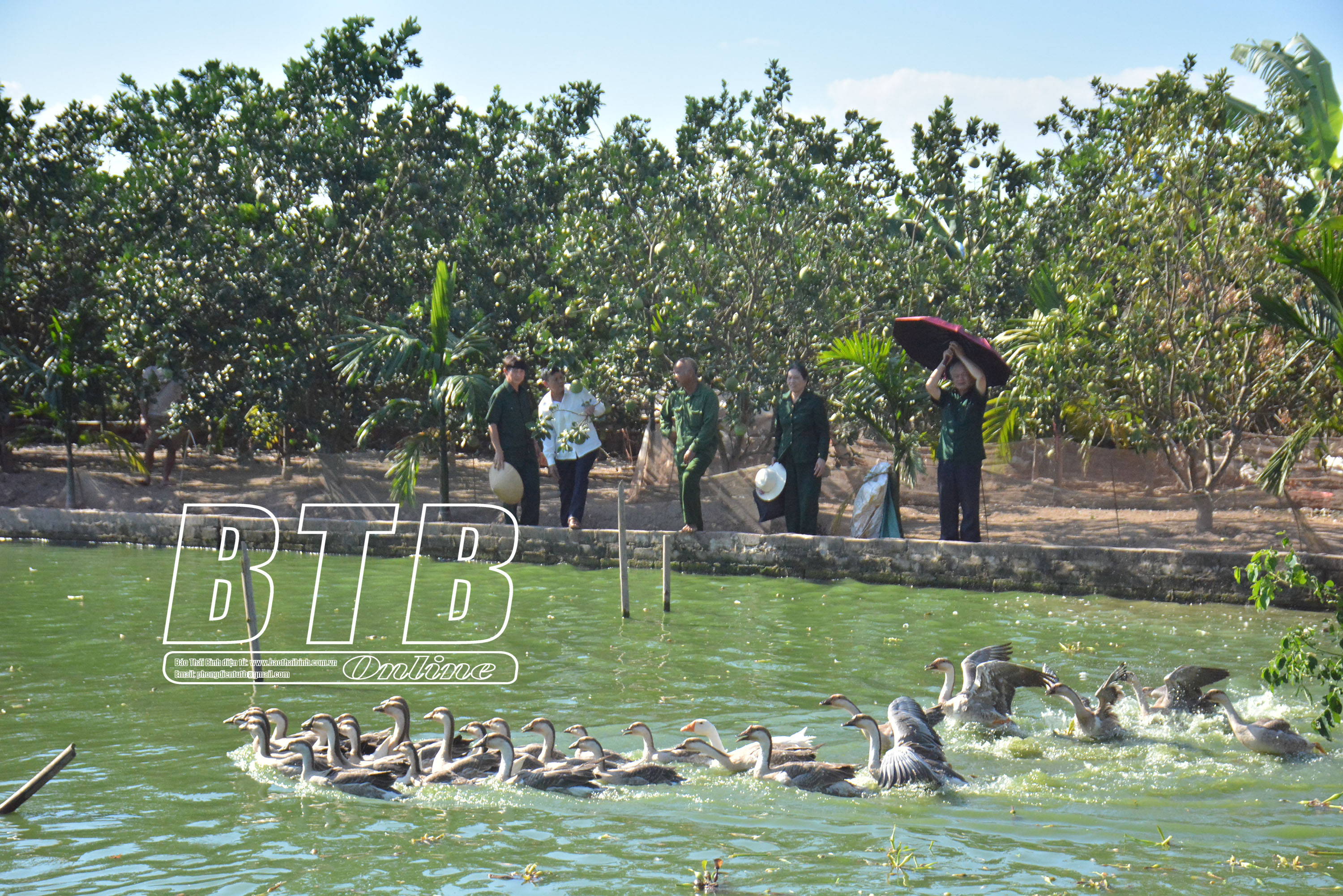 Sau khi hoàn thành nhiệm vụ trở về địa phương, cựu TNXP Bùi Xuân Liệu, thôn Cập, xã Hùng Dũng (Hưng Hà) gặp rất nhiều khó khăn trong cuộc sống. Nhưng không vì thế mà ông Liệu “bó tay ngắm thời cuộc”. Trăn trở tìm hướng làm giàu, việc đầu tiên ông nghĩ đến là phát huy sở trường để kiếm tiền trang trải cuộc sống, lo cho các con ăn học. Với ý chí, nghị lực được rèn luyện trong lực lượng TNXP, ông đã chuyển đổi hơn 7.000m2 đất cấy lúa kém hiệu quả để quy hoạch, đầu tư xây dựng chuồng trại nuôi lợn, gà, đào ao thả cá và trồng cây ăn quả. Ông Liệu cho biết: Đầu tư nhiều nhưng làm kinh tế nông nghiệp không tránh được rủi ro. Nhất là thời điểm xảy ra bệnh dịch tả lợn châu Phi, rồi giá thức ăn chăn nuôi tăng cao, giá thịt lợn, thịt gà giảm. Nhưng tôi quyết bám trụ làm bằng được. Đất không phụ công người, sau bao năm dồn công sức, tiền bạc, đến nay gia trại của gia đình ông Liệu duy trì 300 con lợn, vườn cây sai trĩu quả, ao cá gần 2.000m2 và 1.000 con vịt. Ông cũng có lán làm dịch vụ trông xe cho công nhân của công ty giày da tại địa phương và làm dịch vụ ăn sáng. Mỗi năm gia đình ông thu lãi hơn 200 triệu đồng. Tuổi đã cao, gần đây ông Liệu truyền kinh nghiệm và cùng con trai quản lý gia trại.