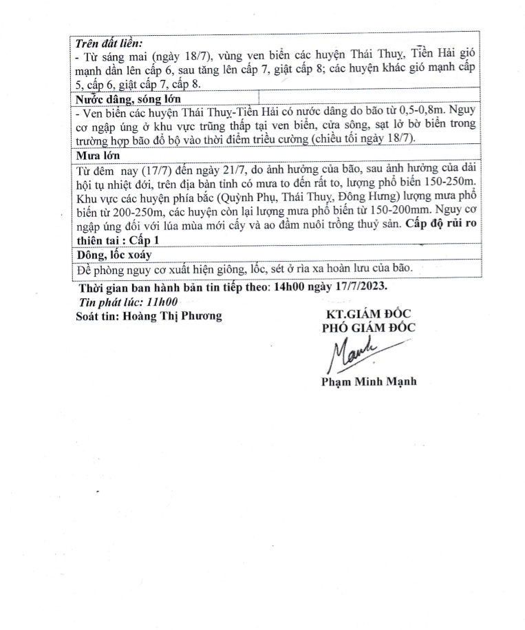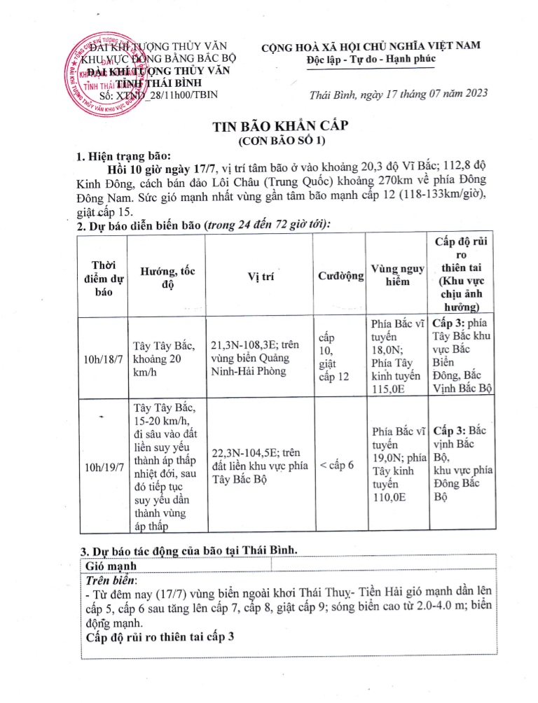 - Tin bão khẩn cấp (Cơn bão số 1) 17.07.2023 | 20:11 PM