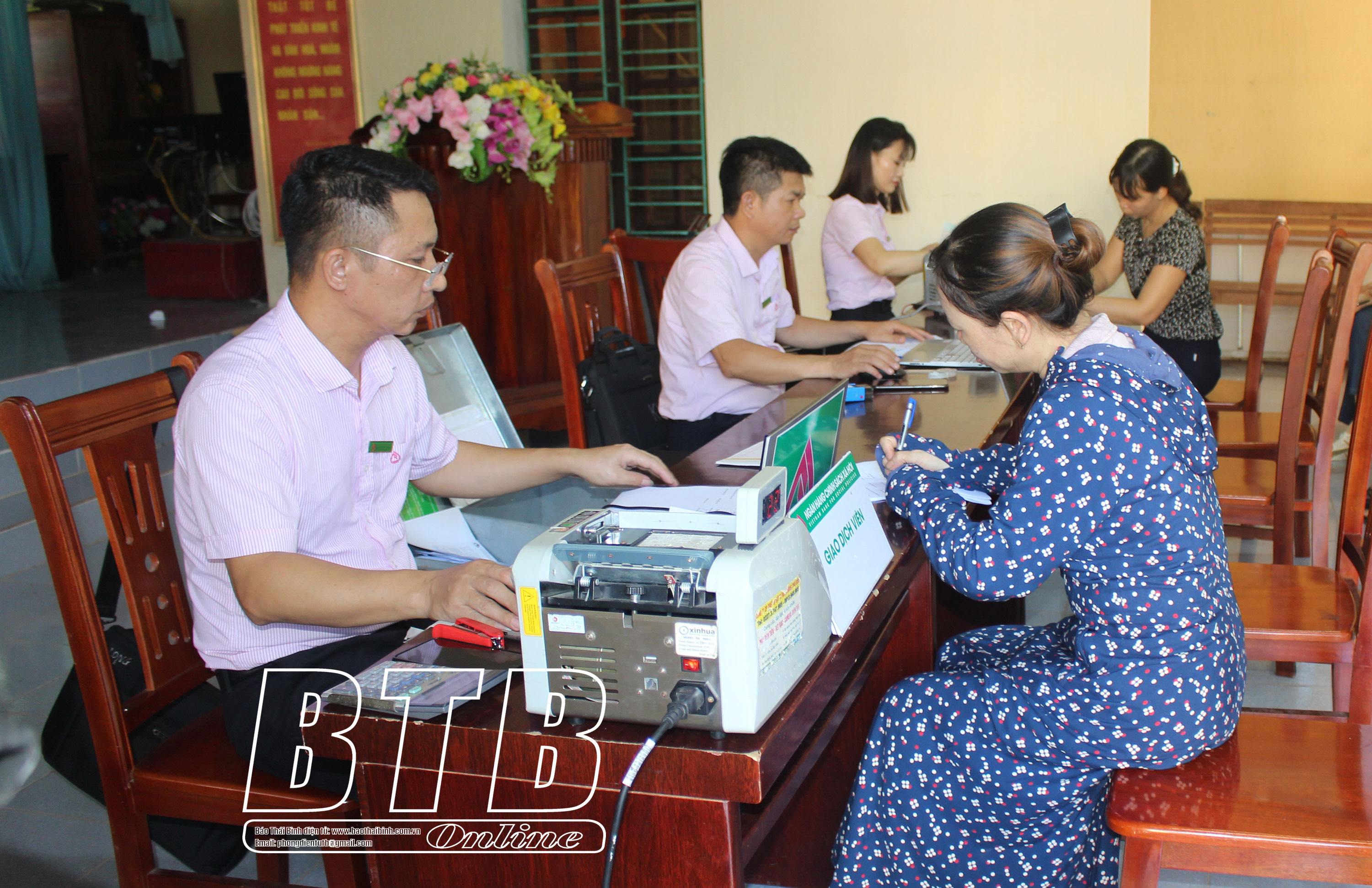 Hoạt động giao dịch của Ngân hàng CSXH ở xã Hòa Tiến.
