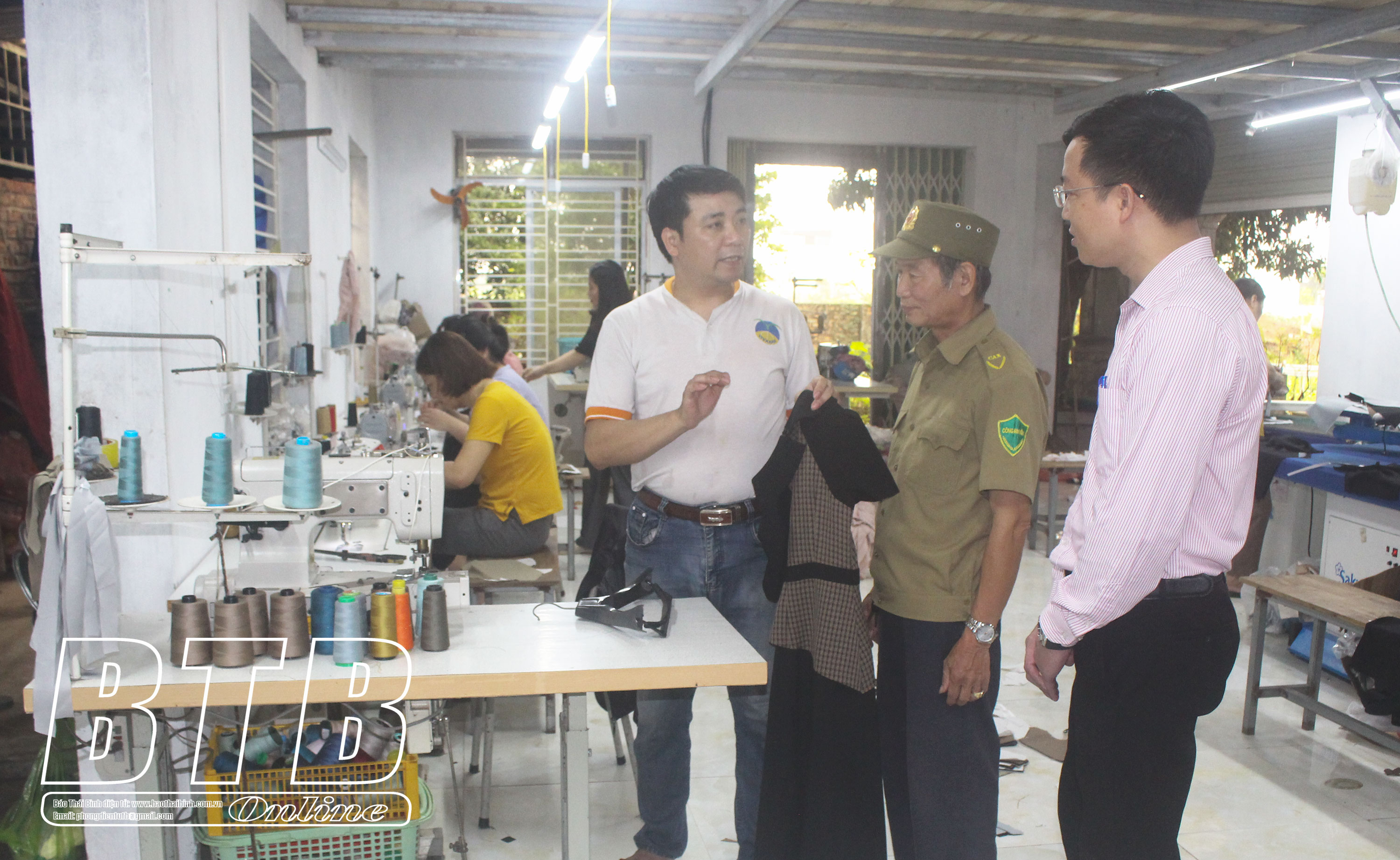 Cán bộ Phòng giao dịch Ngân hàng Chính sách xã hội huyện Thái Thụy kiểm tra việc sử dụng vốn vay của gia đình anh Đỗ Quang Đông (thôn Bắc Cường, xã Thái Thượng).