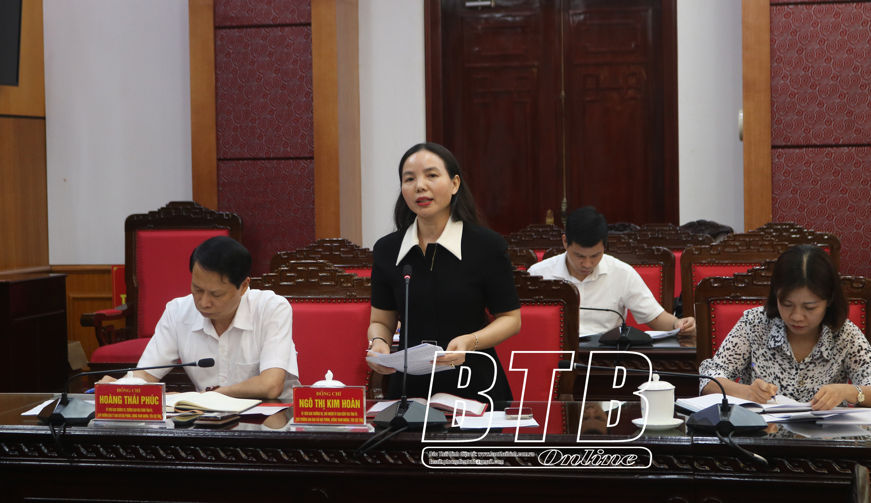 Đồng chí Ngô Thị Kim Hoàn, Ủy viên Ban Thường vụ, Chủ nhiệm Ủy ban Kiểm tra Tỉnh ủy phát biểu tại cuộc họp.