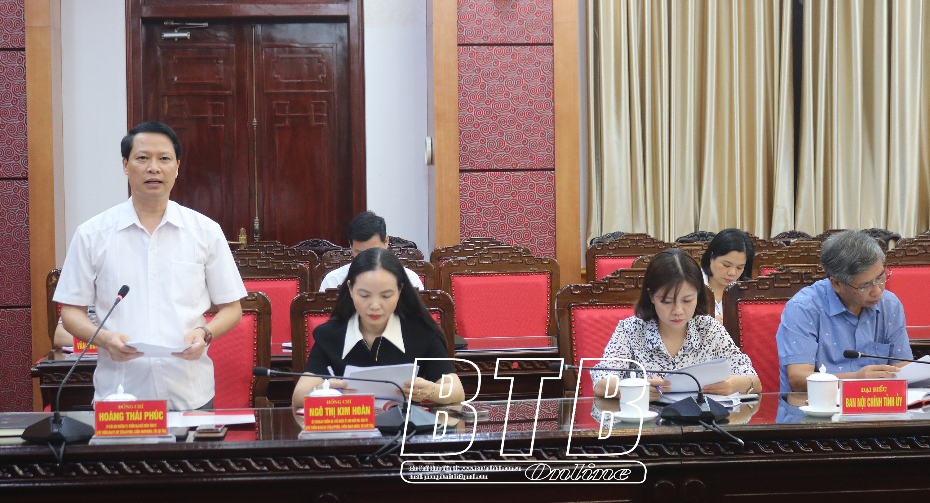 Đồng chí Hoàng Thái Phúc, Ủy viên Ban Thường vụ, Trưởng ban Nội chính Tỉnh ủy, Phó Trưởng ban thường trực Ban Chỉ đạo tỉnh phát biểu tại cuộc họp.