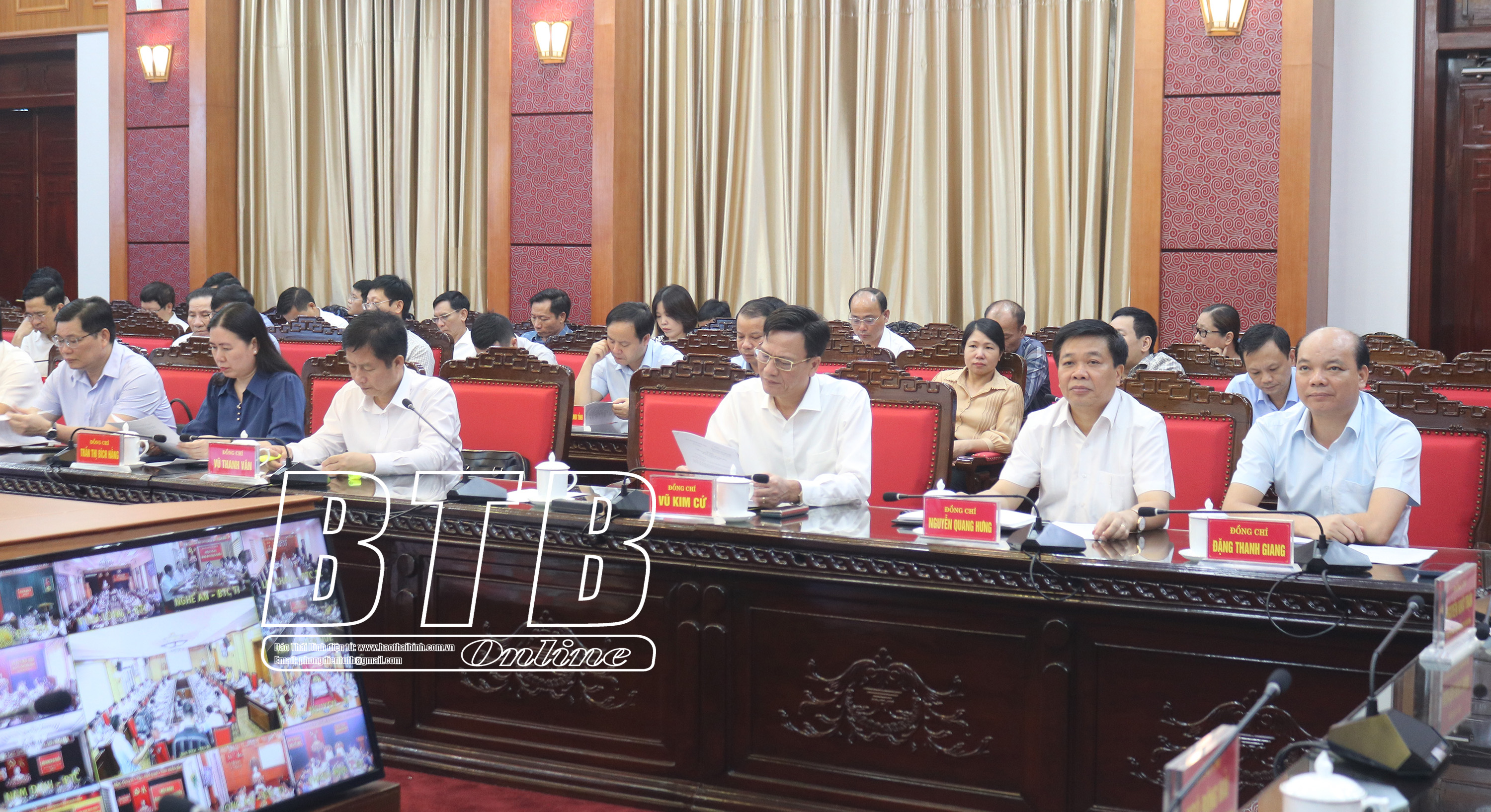 Dự hội nghị tại điểm cầu Thái Bình có các đồng chí: Ngô Đông Hải, Ủy viên Ban Chấp hành Trung ương Đảng, Bí thư Tỉnh ủy; Nguyễn Khắc Thận, Phó Bí thư Tỉnh ủy, Chủ tịch UBND tỉnh; các đồng chí Ủy viên Ban Thường vụ Tỉnh ủy; lãnh đạo HĐND, UBND tỉnh, Đoàn đại biểu Quốc hội tỉnh; các đồng chí Ủy viên Ban Chấp hành Đảng bộ tỉnh; thủ trưởng các sở, ban, ngành, đoàn thể tỉnh; các đồng chí Ủy viên Ủy ban kiểm tra Tỉnh ủy, chủ tịch UBND các huyện, thành phố; trưởng ban tổ chức các huyện ủy, thành ủy, đảng ủy trực thuộc Tỉnh ủy.