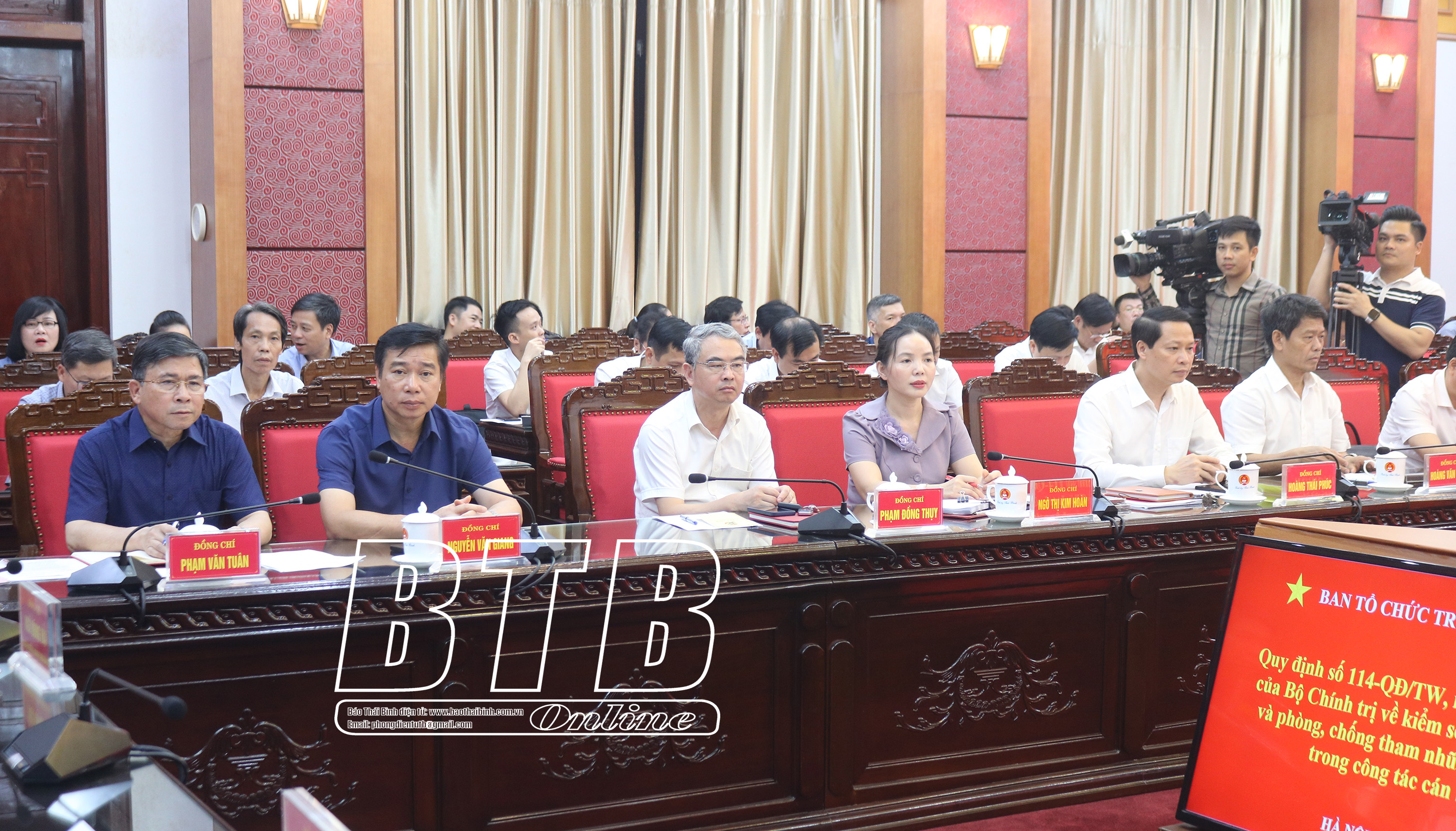 Tại hội nghị, các đại biểu đã nghe lãnh đạo Ban Tổ chức Trung ương quán triệt Quy định số 114-QĐ/TW ngày 11/7/2023 của Bộ Chính trị về kiểm soát quyền lực và phòng, chống tham nhũng, tiêu cực trong công tác cán bộ (Quy định này thay thế Quy định số 205-QĐ/TW ngày 23/9/2019 của Bộ Chính trị về việc kiểm soát quyền lực trong công tác cán bộ và chống chạy chức, chạy quyền). Quy định gồm 5 chương, 16 điều, trong đó nêu rõ những hành vi tham nhũng, tiêu cực trong công tác cán bộ gồm: 8 hành vi lợi dụng, lạm dụng chức vụ, quyền hạn; 6 hành vi chạy chức, chạy quyền và 5 hành vi tiêu cực khác. Liên quan đến trách nhiệm kiểm soát quyền lực và phòng, chống tham nhũng, tiêu cực trong công tác cán bộ, quy định nêu rõ trách nhiệm của cấp ủy, tổ chức đảng, tập thể lãnh đạo; trách nhiệm của thành viên cấp ủy, tổ chức đảng, tập thể lãnh đạo; trách nhiệm của người đứng đầu cấp ủy, tổ chức đảng, tập thể lãnh đạo; trách nhiệm của người đứng đầu các cơ quan tham mưu, của cán bộ tham mưu, của nhân sự… Quy định cũng nêu rõ các vấn đề về xử lý vi phạm và các điều khoản thi hành.