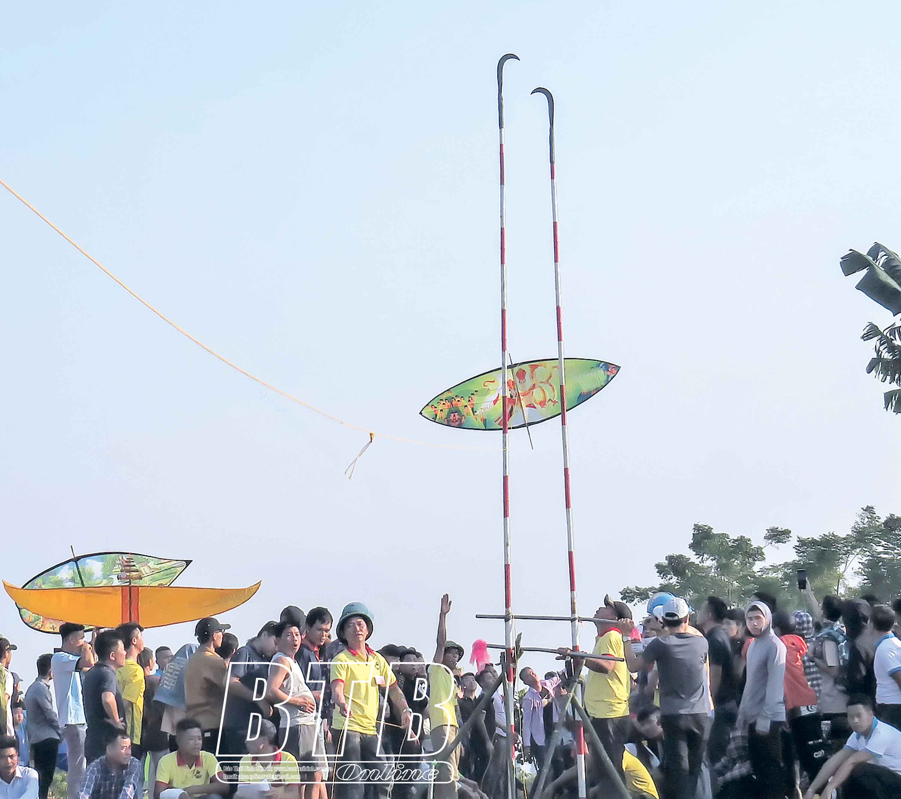 Các câu lạc bộ trong và ngoài tỉnh tham gia hội thi thả diều vượt câu liêm.