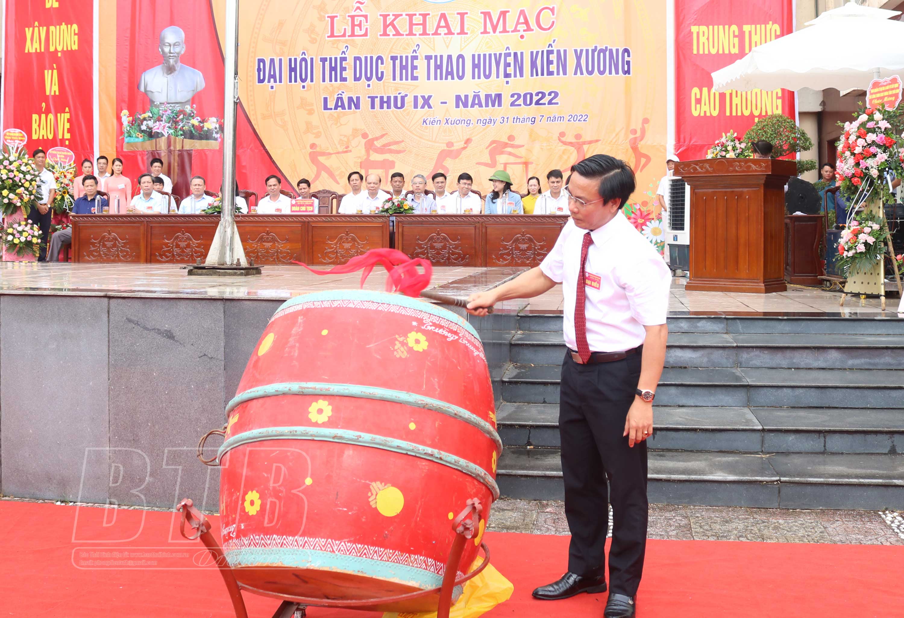 Lãnh đạo huyện Kiến Xương đánh trống khai mạc Đại hội.