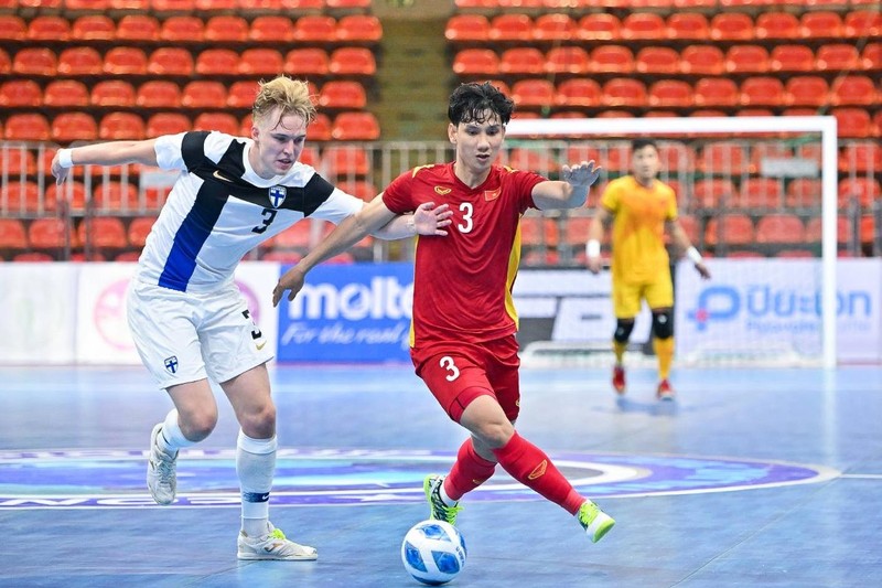 Sang hiệp 2, trong tình thế bị dẫn 2 bàn, đội tuyển futsal Phần Lan tràn lên gây sức ép mạnh mẽ bên phần sân Việt Nam.