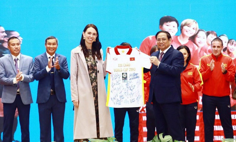 Tại buổi lễ, Thủ tướng Phạm Minh Chính đã trao tặng áo đấu có chữ ký của các thành viên đội tuyển nữ Việt Nam - vừa lần đầu giành vé tham dự FIFA World Cup nữ 2023, tới Thủ tướng New Zealand. Đáp lại, Thủ tướng New Zealand Jacinda Ardern cũng đã trao tặng áo đấu của đội tuyển New Zealand tới Thủ tướng Phạm Minh Chính.