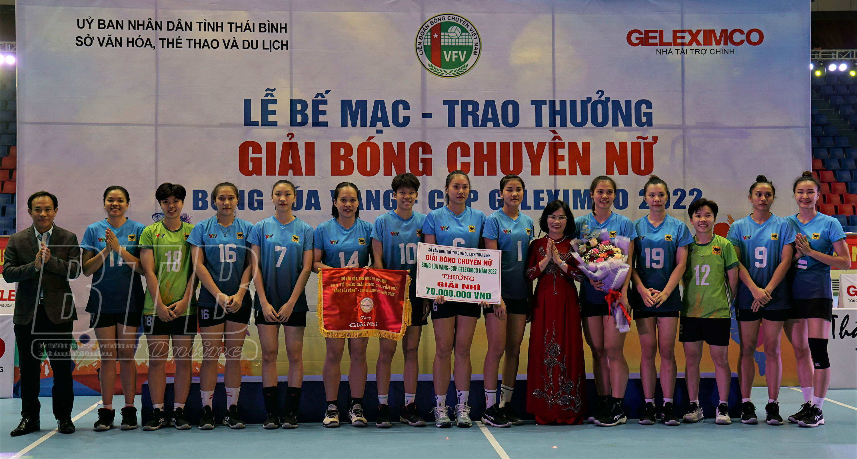 Đội VTV Bình Điền Long An được trao giải Nhì tại giải bóng chuyền nữ Bông lúa vàng tranh Cúp Geleximco năm 2022.