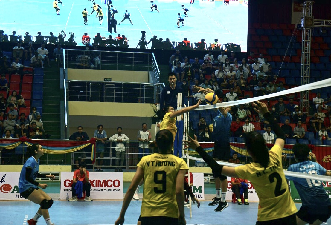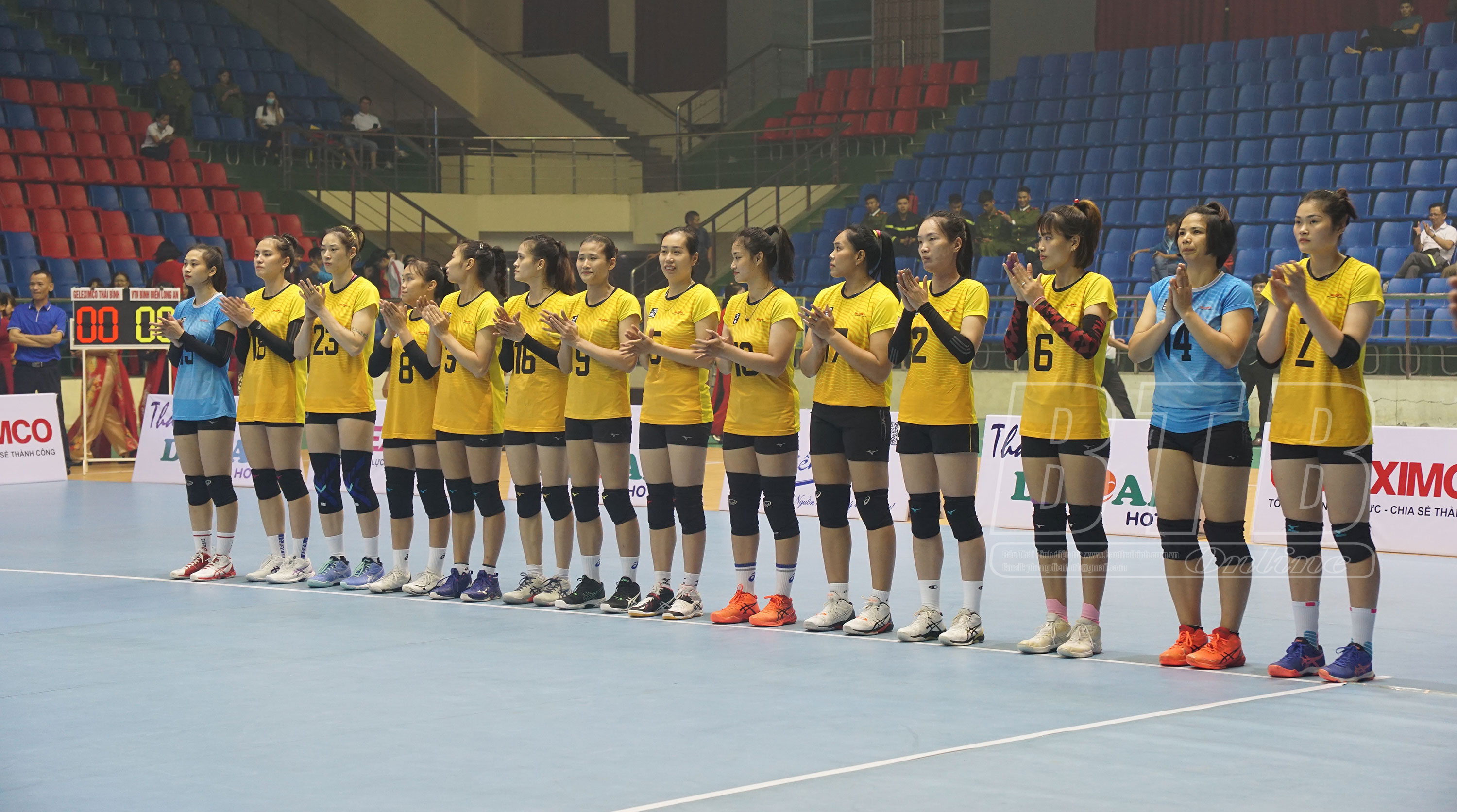Các VĐV trong đội hình thi đấu của Geleximco Thái Bình trong trận chung kết.
