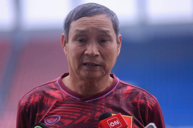 HLV Mai Đức Chung trả lời phỏng vấn tại buổi tập.